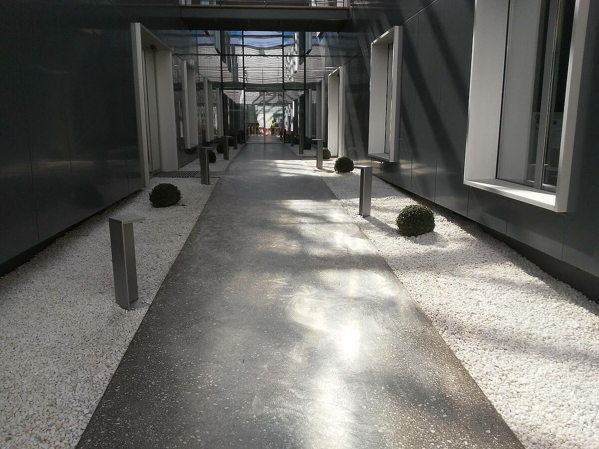 La dirección Dirección de la multinacional sigue apostando por el asfalto fundido como el pavimento para sus instalaciones.