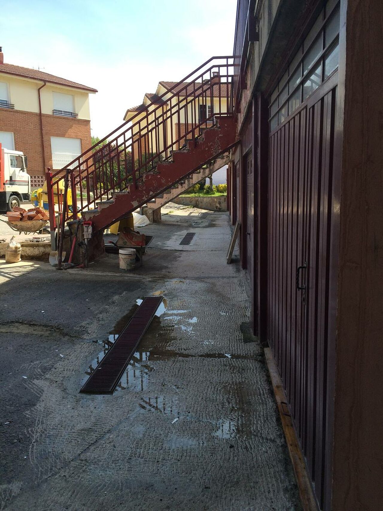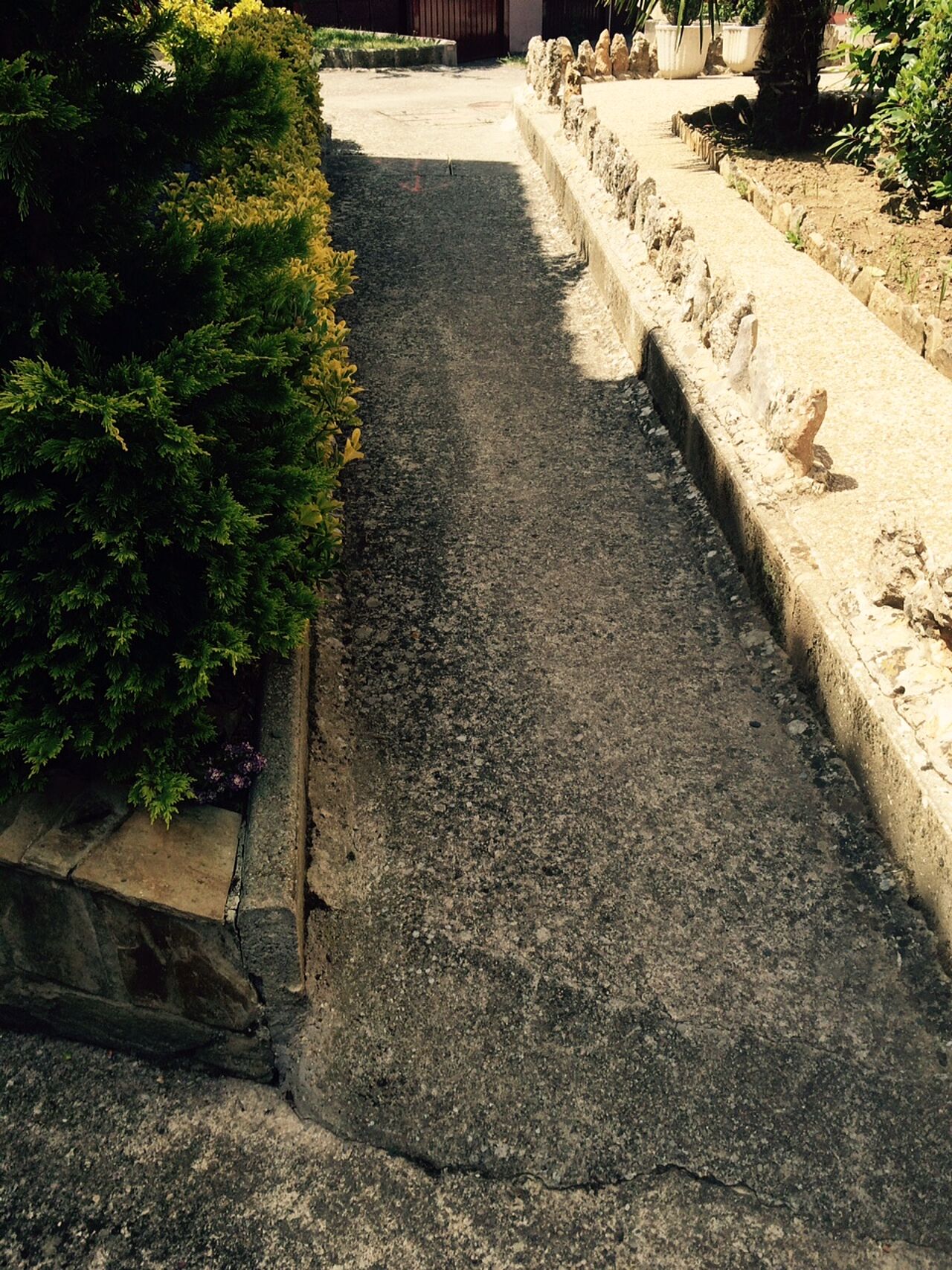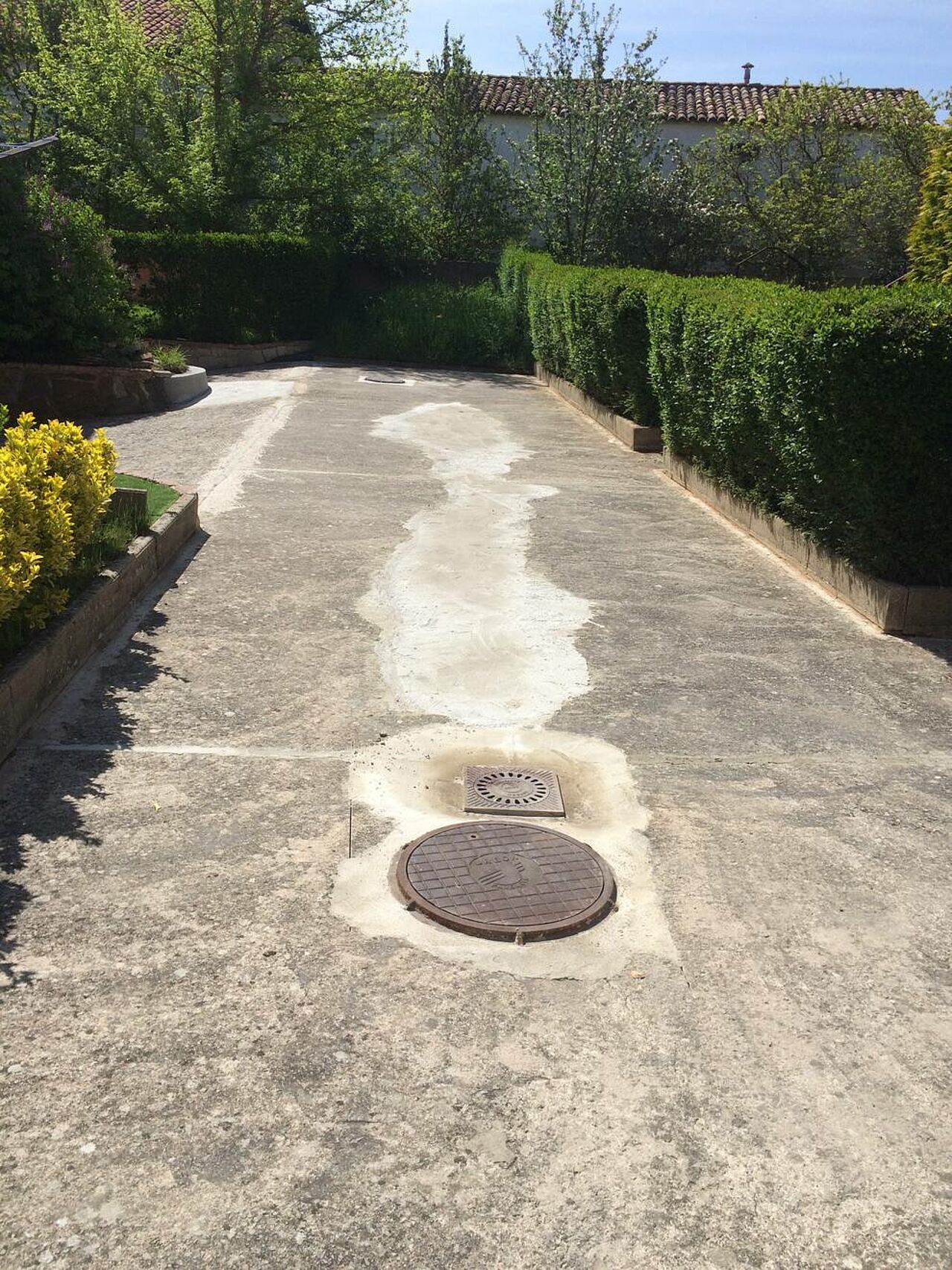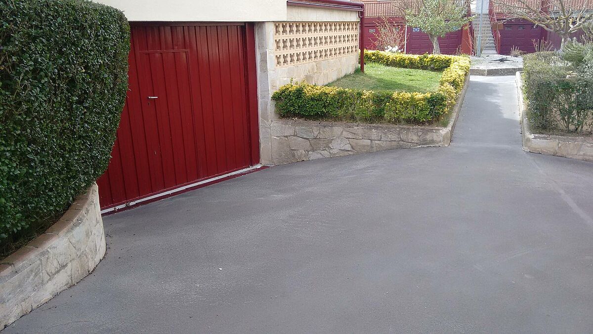 La solución efectuada por Clunia asfaltos fundidos, ha consistido en unas mínimas actuaciones de albañilería de saneamiento de las zonas más afectadas y realización de encuentros entre asfalto y otros pavimentos.