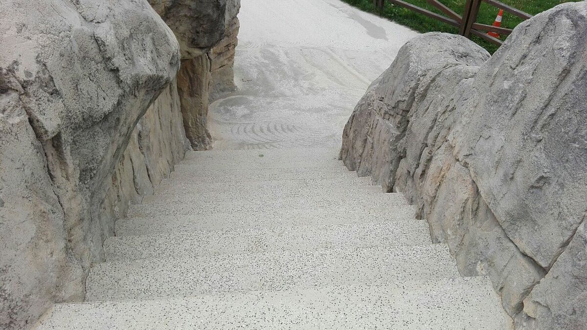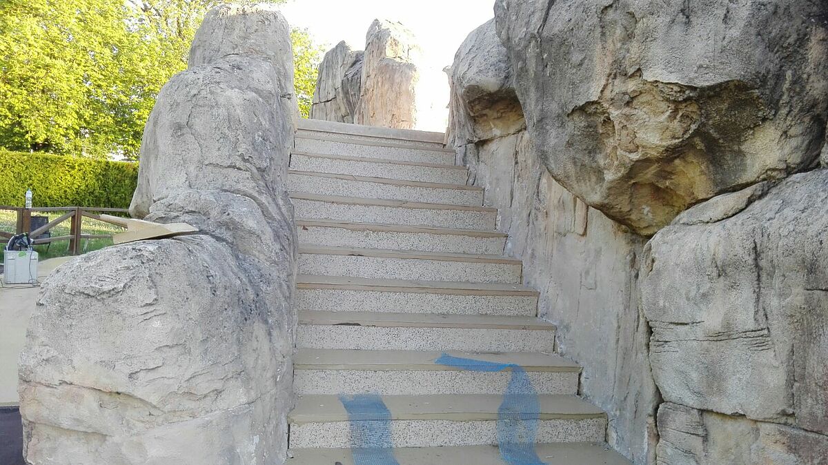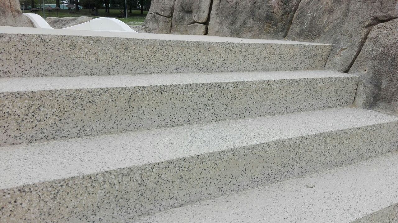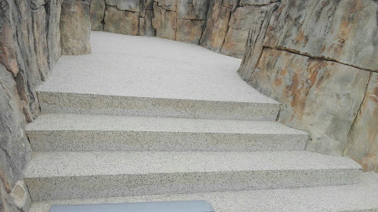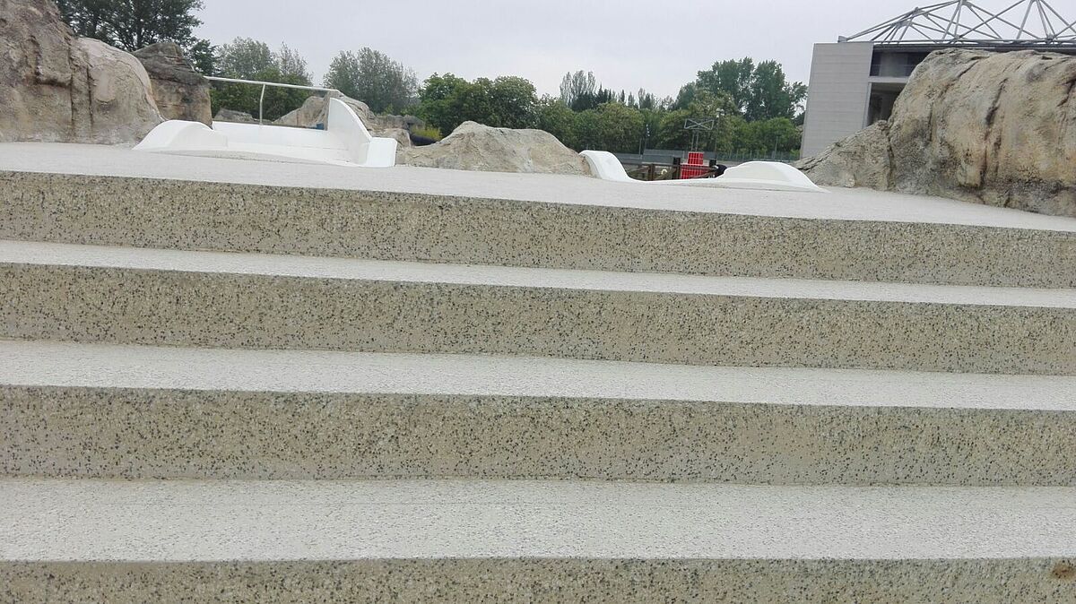 Se han renovado tanto las aceras de las piscinas como todos los peldaños de acceso a la zona superior, tanto tabicas como huellas.