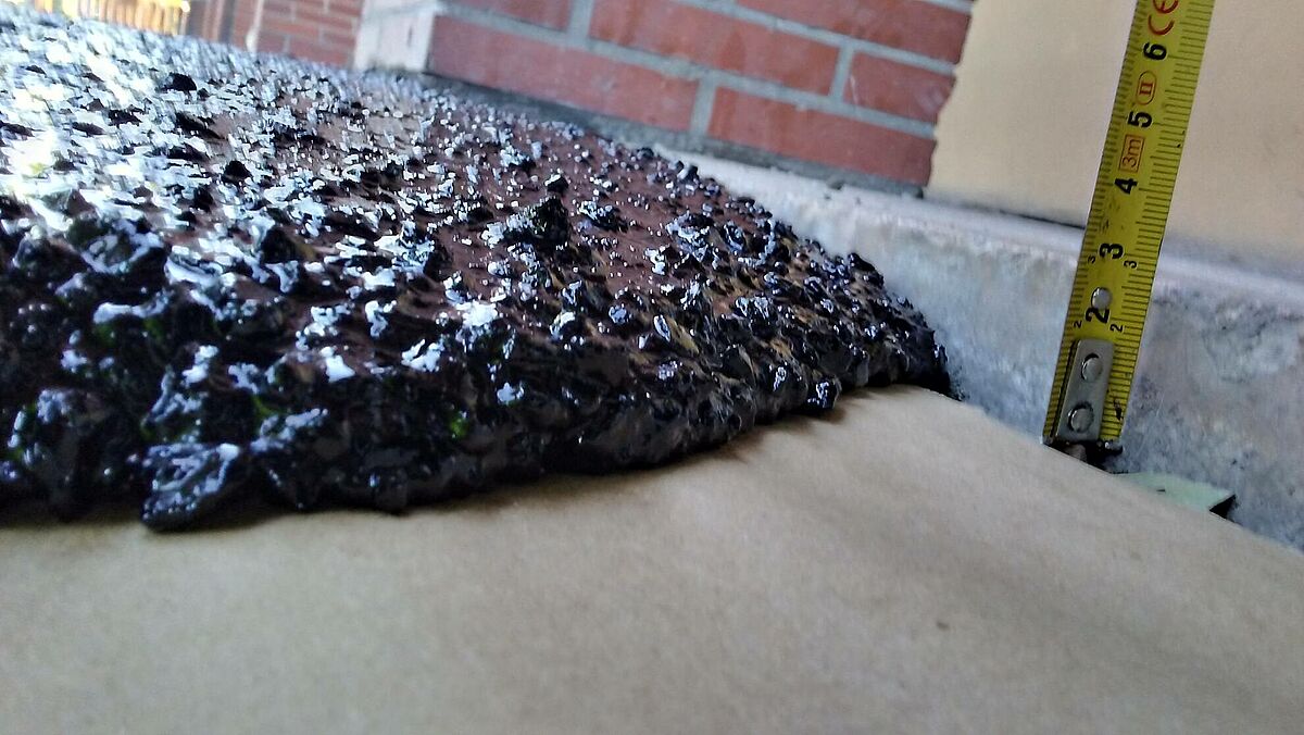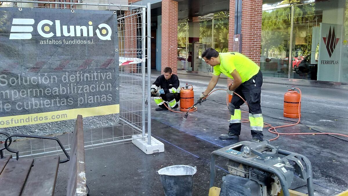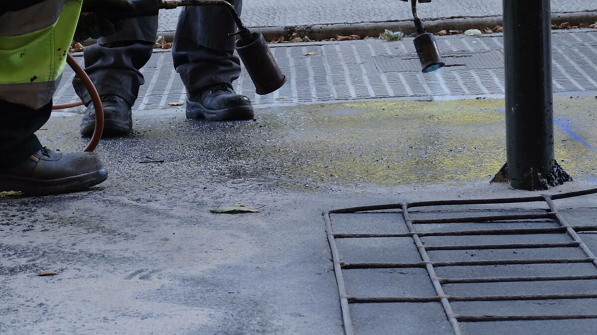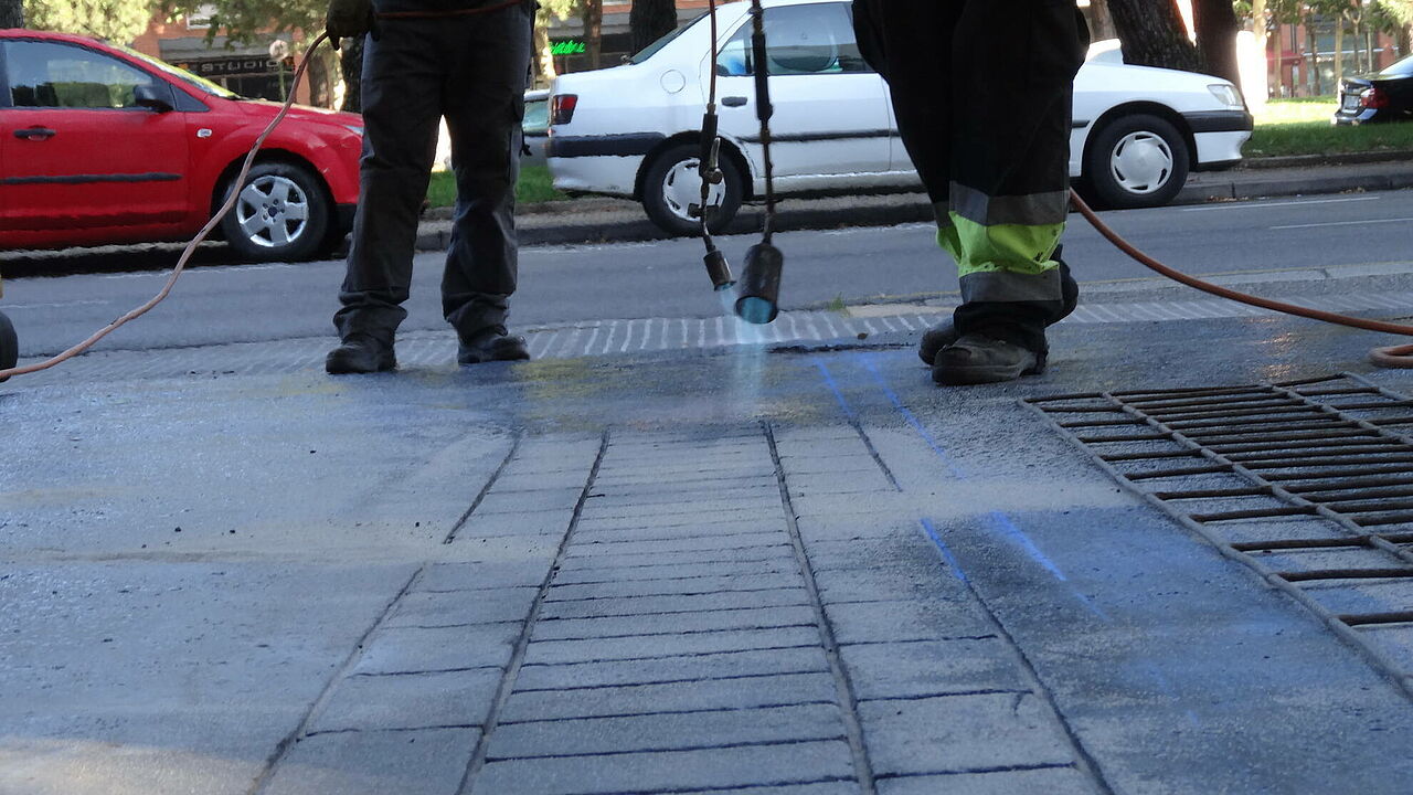 Descripción del proyecto: Los técnicos de Ayuntamiento vuelven a confiar en la versatilidad del asfalto fundido para la renovación de aceras de la ciudad.