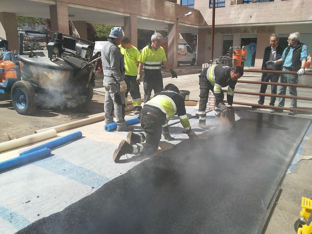 El equipo de Clunia asfaltos fundidos, ha realizado un nuevo proyecto de impermeabilización sobre baldosa sin colocación de telas asfálticas.