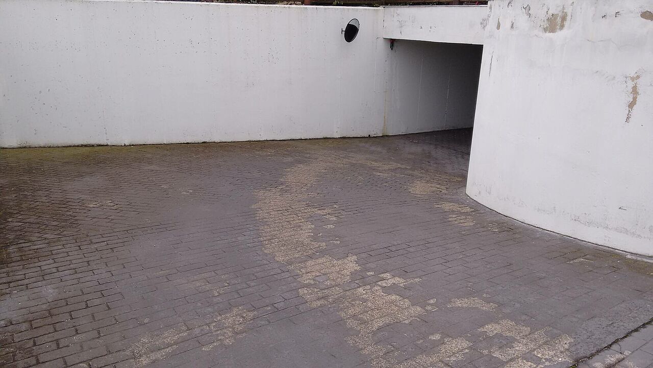 El proyecto ha consistido en aplicar una capa de asfalto fundido siliceado sobre un soporte de hormigón impreso totalmente deteriorado por la acción del agua, la sal y las heladas.