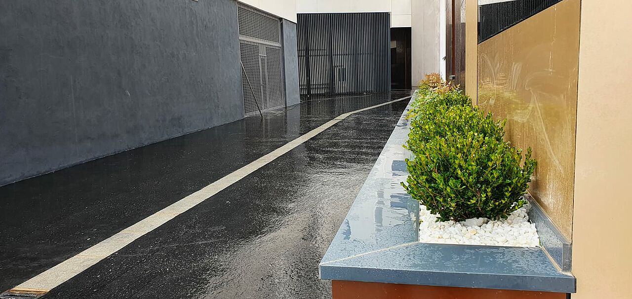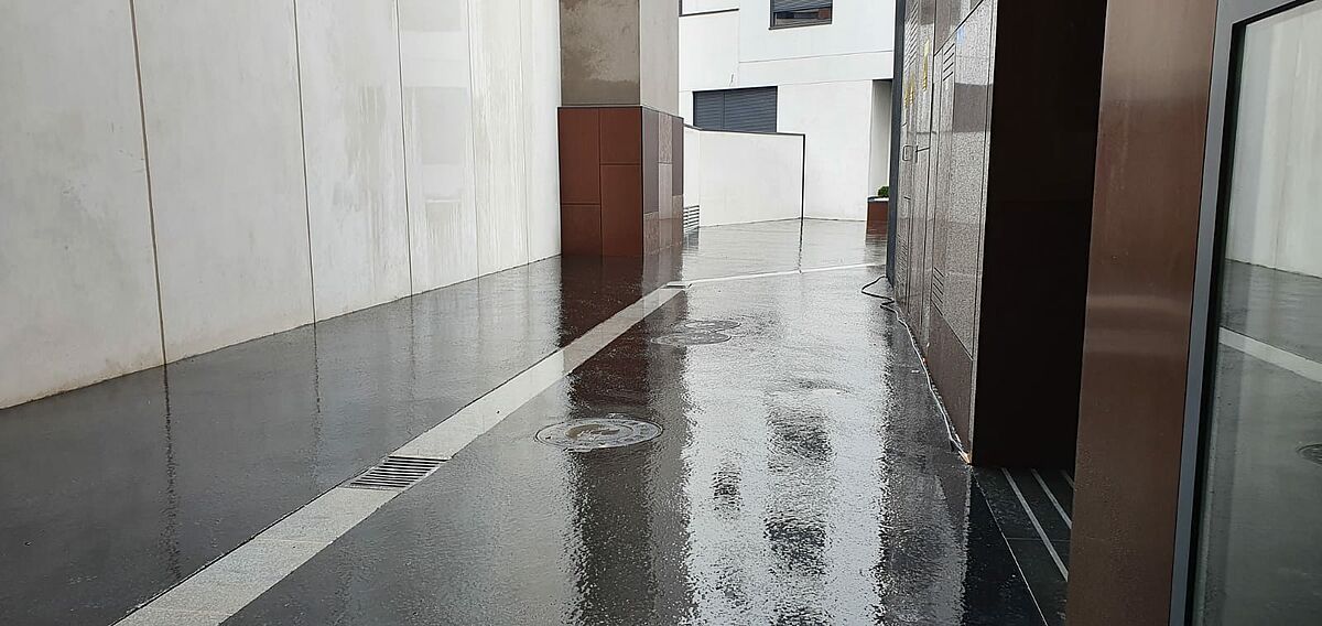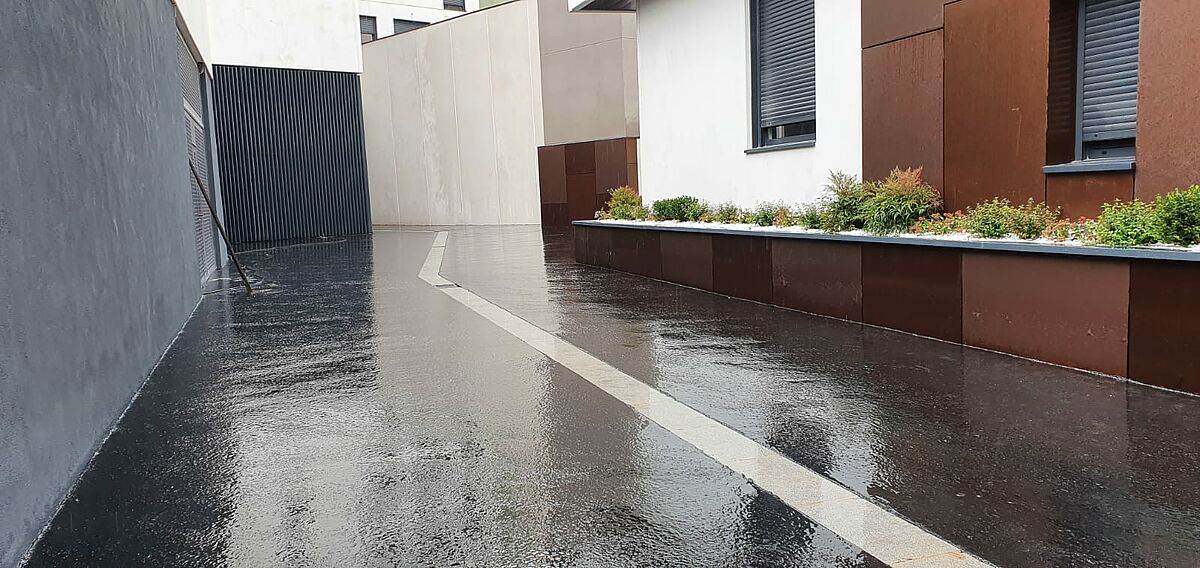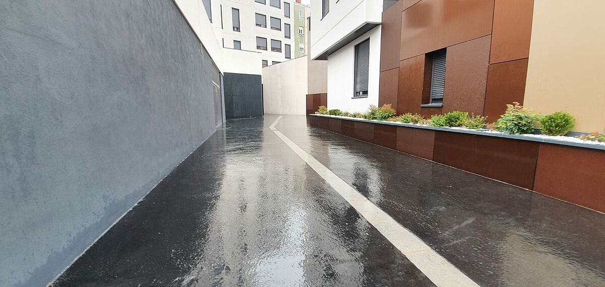 Los arquitectos han prescrito el asfalto fundido como pavimento impermeable sobre un forjado exitente como refuerzo a la impermeabilización ejecutada anteriormente.