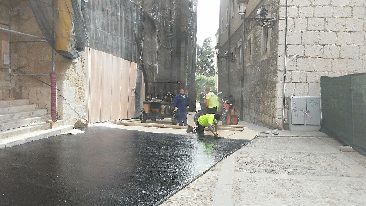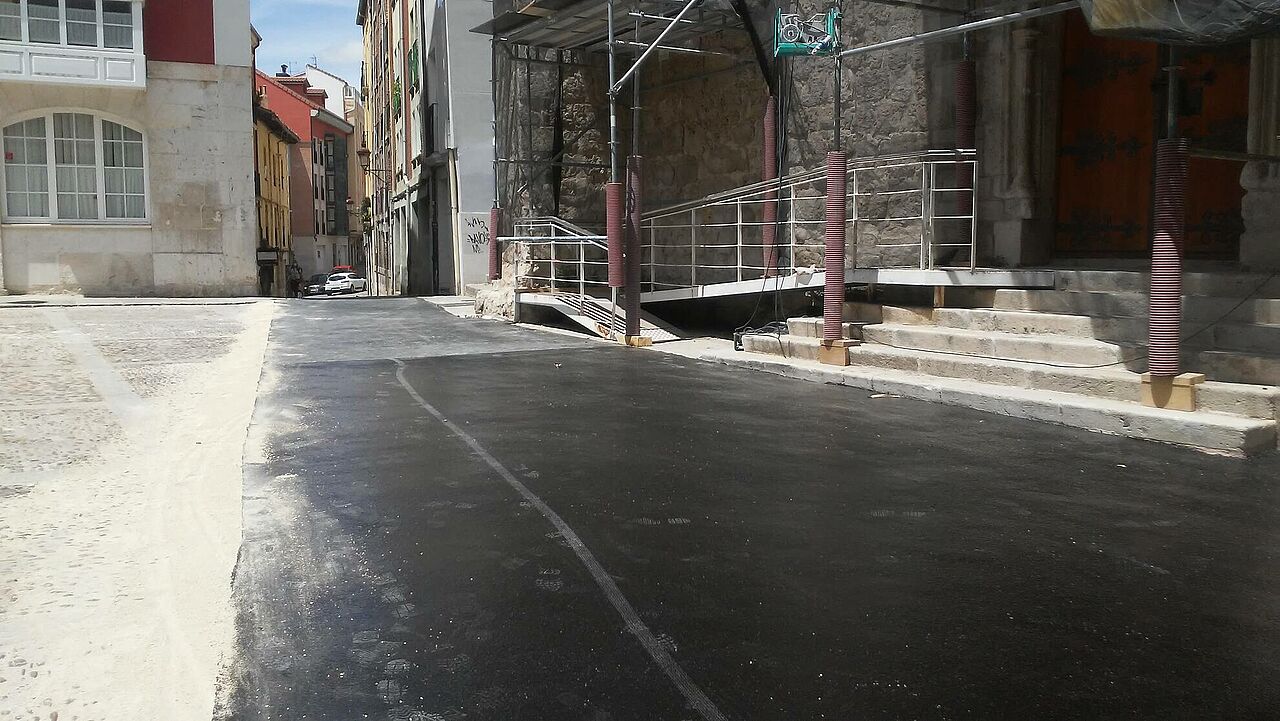 Con motivo del VIII Centenario de la Catedral de Burgos, la Vuelta ciclista a España 2021 comienza con la etapa prólogo desde la misma puerta de la Catedral. Al ser una contrarreloj individual y transcurrir por el casco viejo, los pavimentos son adoquinados por lo que dificulta el tránsito de los ciclistas. La organización de la Vuelta recomendó regularizar las calles por las que transcurre la carrera, los técnicos decidieron aplicar una capa de asfalto fundido debido a su resistencia, nula resbaladicidad, sencillez de aplicación y de demolición.