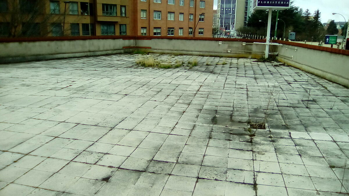 El proyecto ha consistido en la impermeabilización y pavimentación SIN DEMOLICIÓN DEL SOPORTE de una terraza de 2.000 m2 de superficie, en un avanzado estado de deterioro a causa de la aparición de abundante mala hierba que suelta la baldosa y origina goteras.