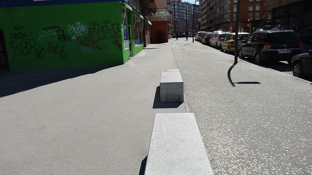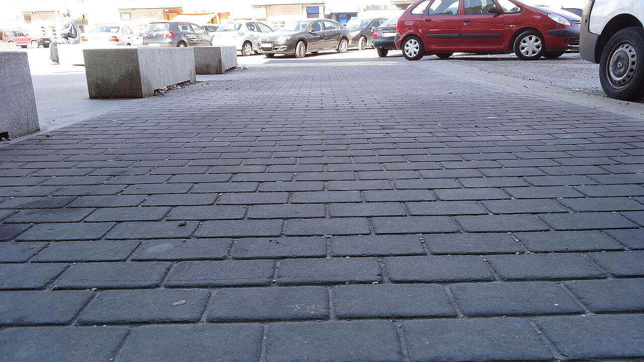 El Ayuntamiento ha decidido la terminación del pavimento mediante aglomerado pulido. Al no poder acceder las máquinas de extendido sobre el forjado y no ser un pavimento impermeable, se ha optado por el sistema bicapa mixto para impermeabilizar dicha zona y pavimentar con un material que logre un acabado estético similar al Bulevar.