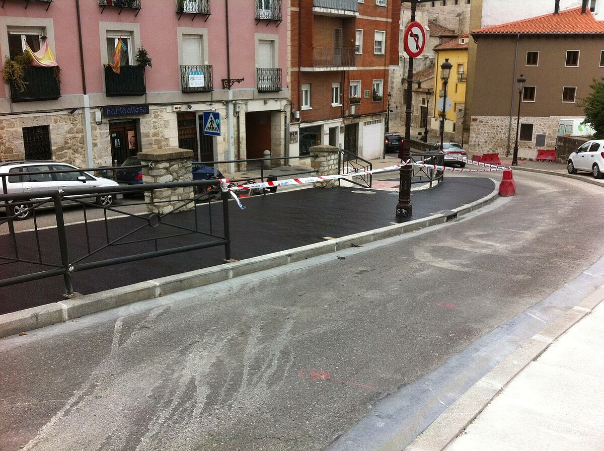 Al ser el asfalto fundido un pavimento antideslizante tanto en seco como en mojado, el Ayuntamiento de Burgos se ha inclinado por esta opción debido a la fuerte pendiente de ésta calle y la cantidad de accidentes por resbalones que en ella ocurrían.