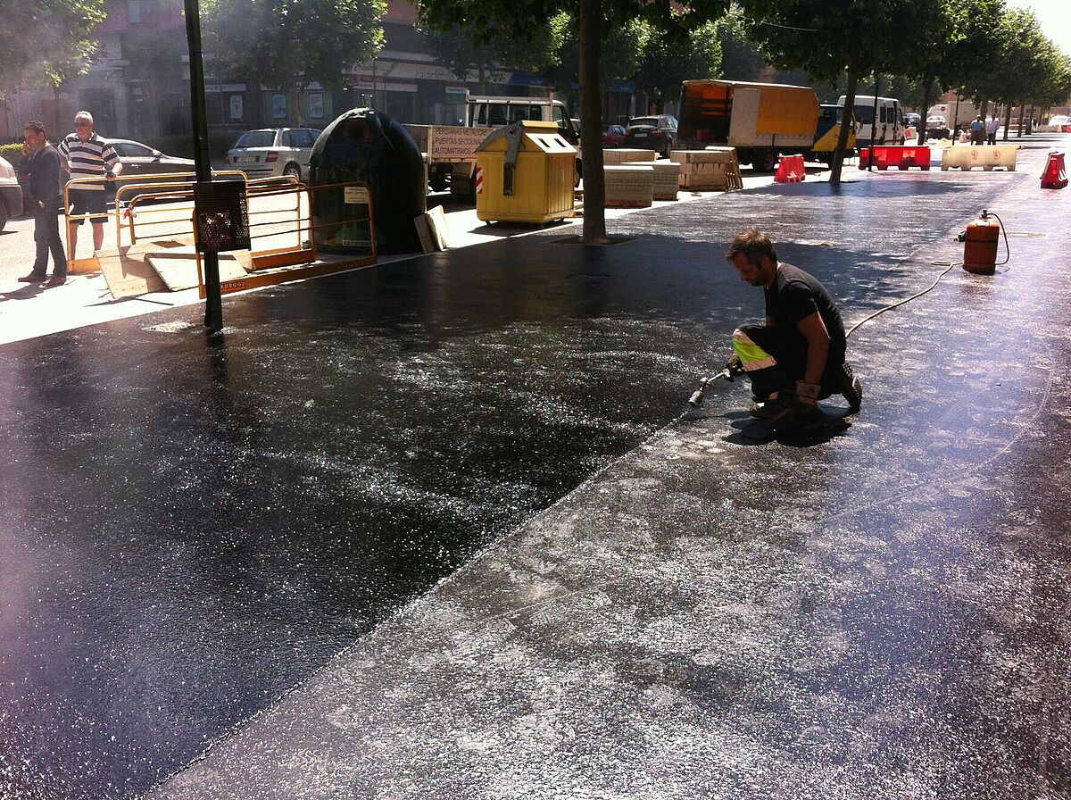 El Ayuntamiento de Burgos de nuevo elige la solución del asfalto fundido para la renovación de las aceras en la C/ Trujillo.