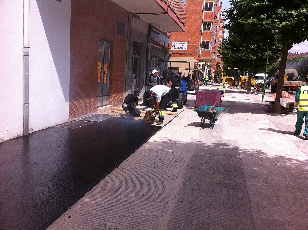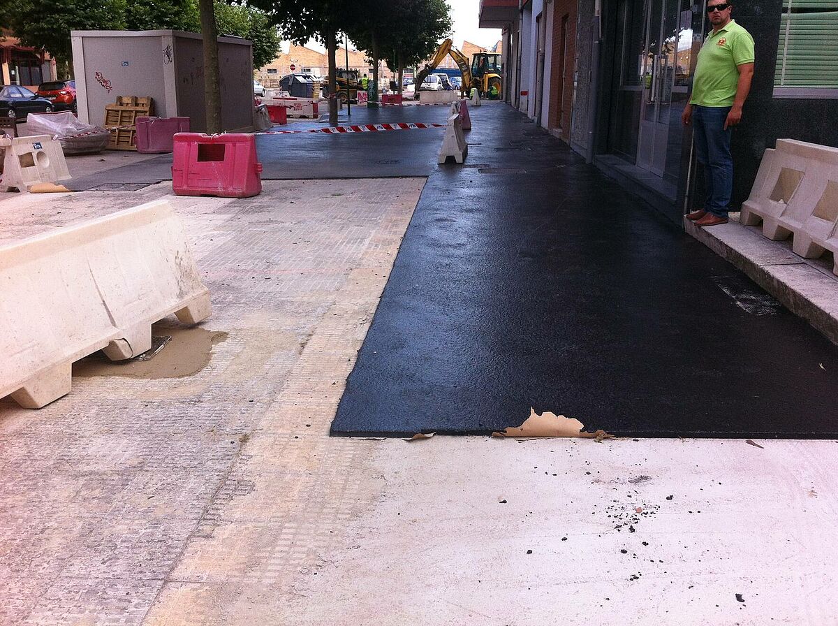 Éste proyecto ha consistido en la preparación del soporte, eliminando las baldosas sueltas o deterioradas, levantar las tapas de arquetas a la cota del asfalto fundido y renovación de bordillos y colocación a la cota adecuada.