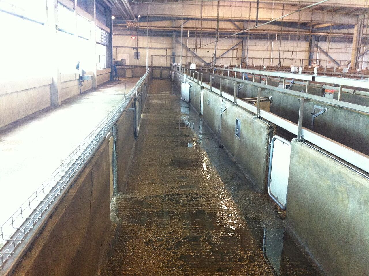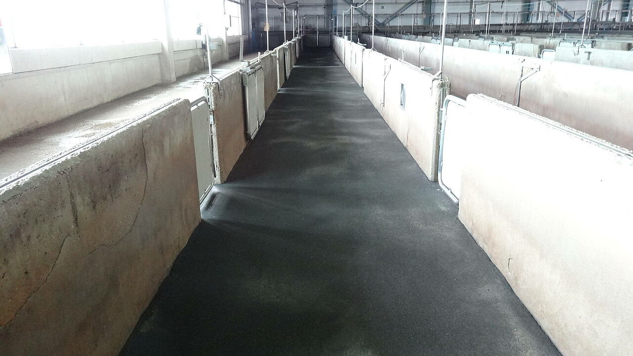 Se buscaba un pavimento que resistiera la constante agresión de las pezuñas de los animales y no se degradara con la exigente limpieza a base de agentes químicos que se utilizan para la limpieza de los soportes.