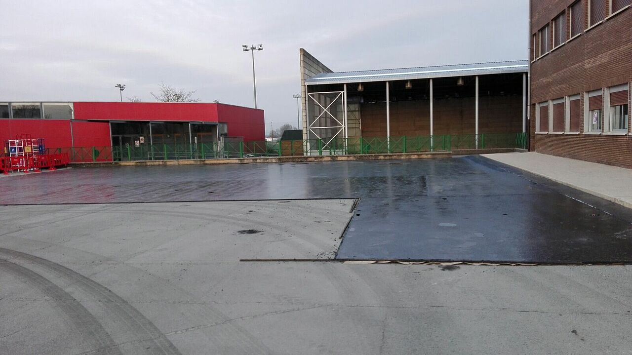 El equipo de Clunia Asfaltos Fundidos se desplaza a Alegría-Dulantzi para realizar junto con Balgorza, la pavimentación del patio del colegio de educación primaria Dulantzi.
