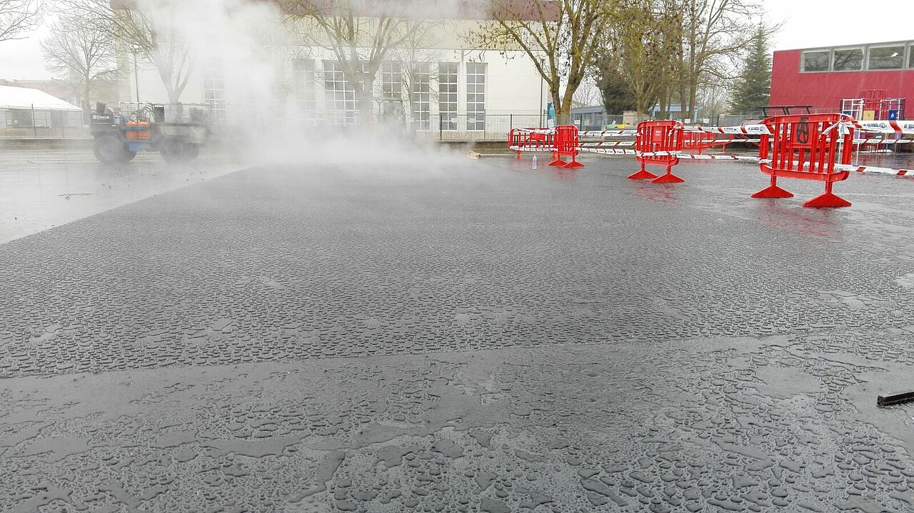 Los técnicos deciden pavimentar con asfalto fundido por: