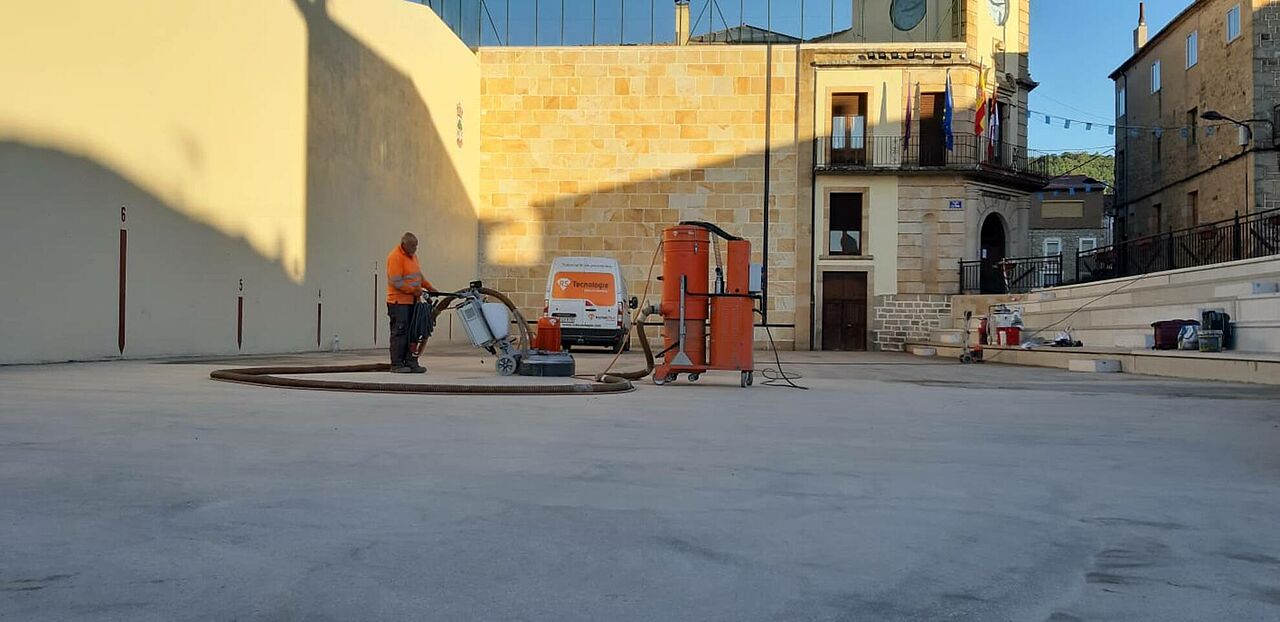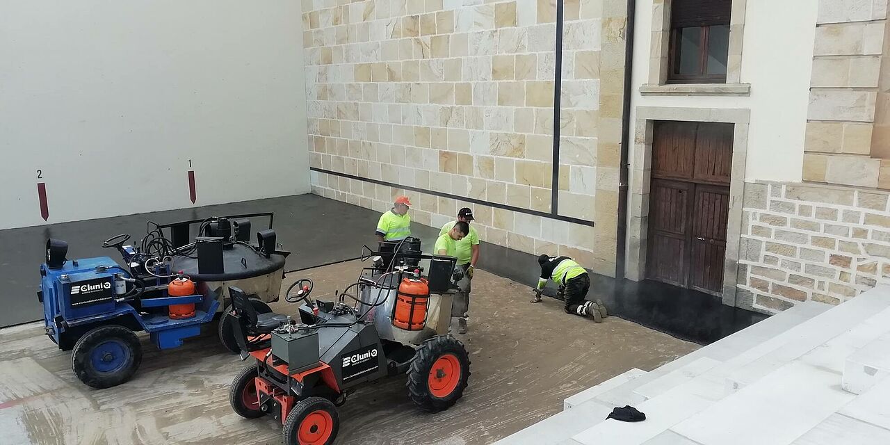 Un nuevo Ayuntamiento ha confiado en el equipo de Clunia asfaltos fundidos. En éste caso se trata de la renovación del pavimento del frontón de la localidad.