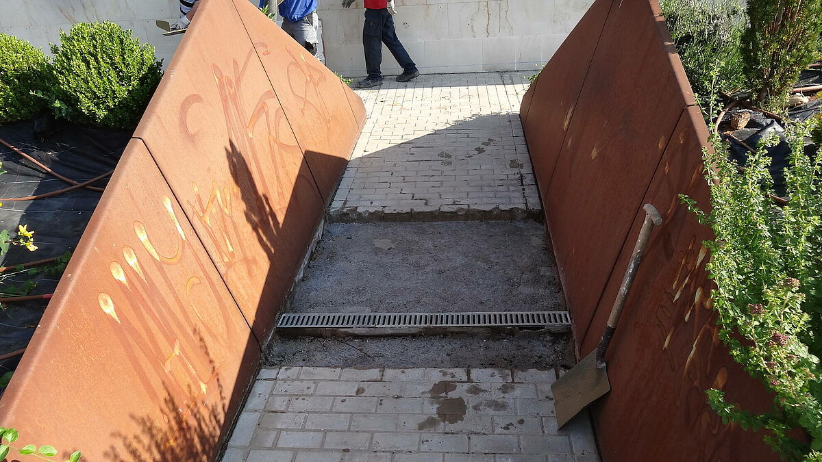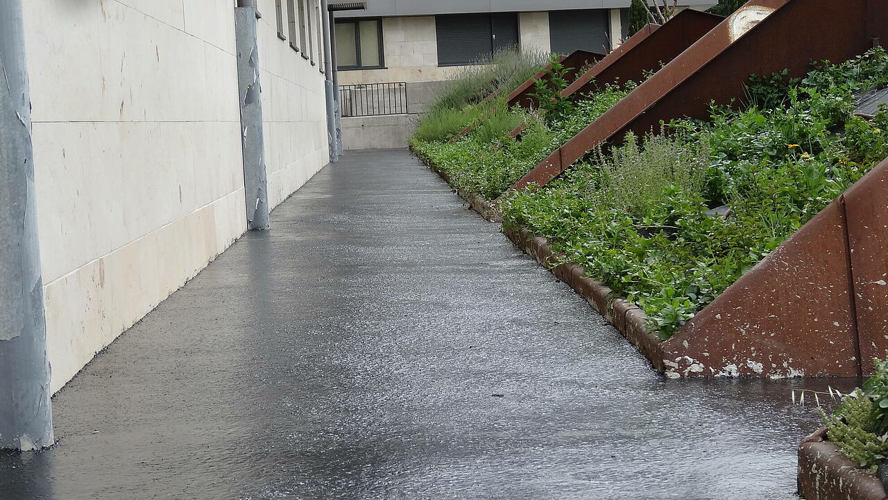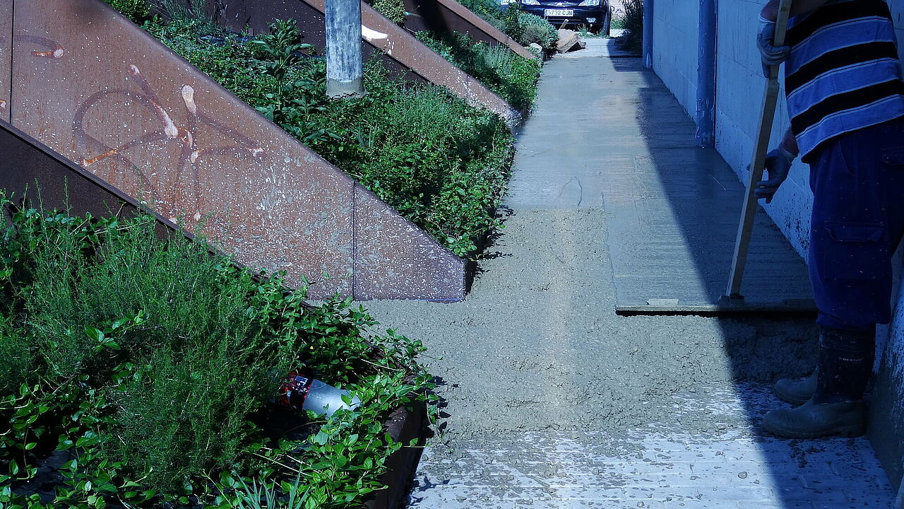 La solución ejecutada por el equipo de Clunia asfaltos fundidos ha consistido la ejecución de nuevas pendientes con hormigón y posterior aplicación de asfalto fundido para evitar las filtraciones.