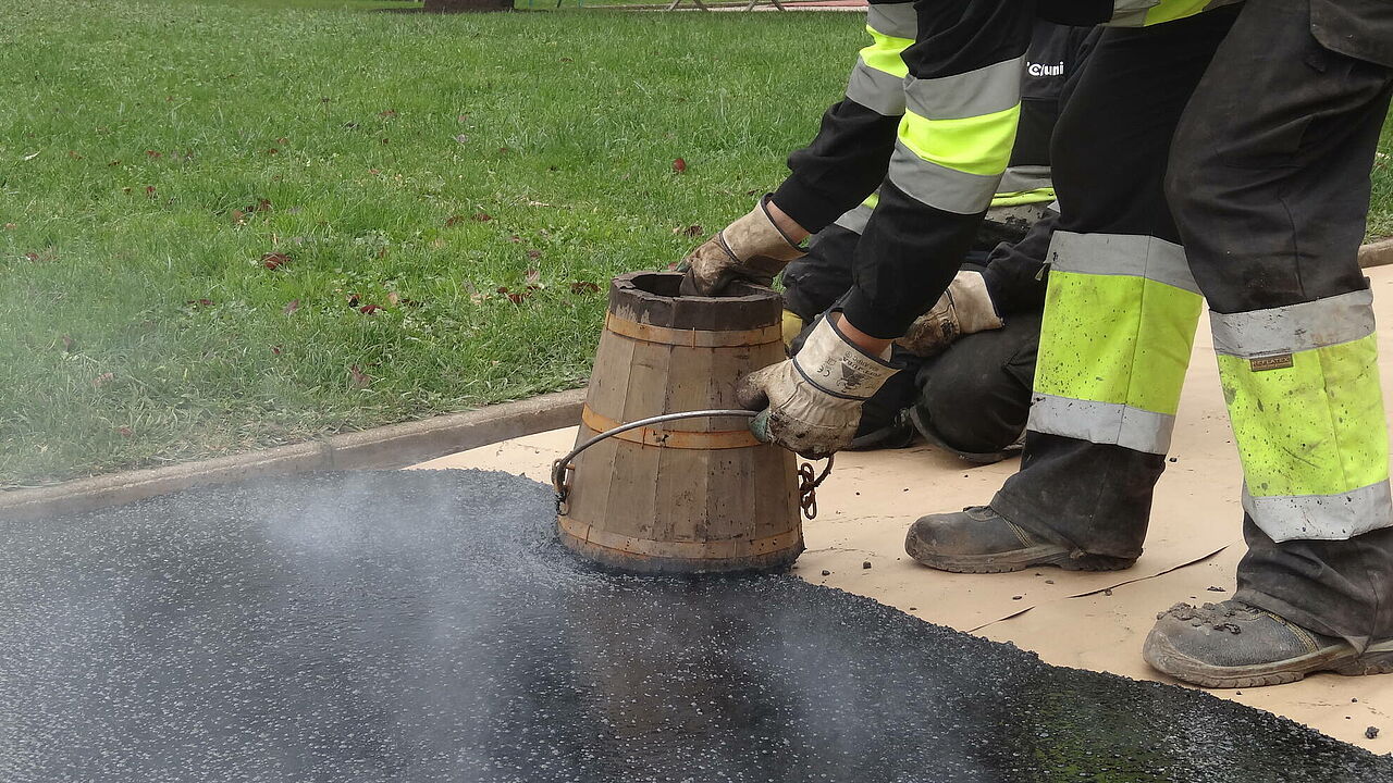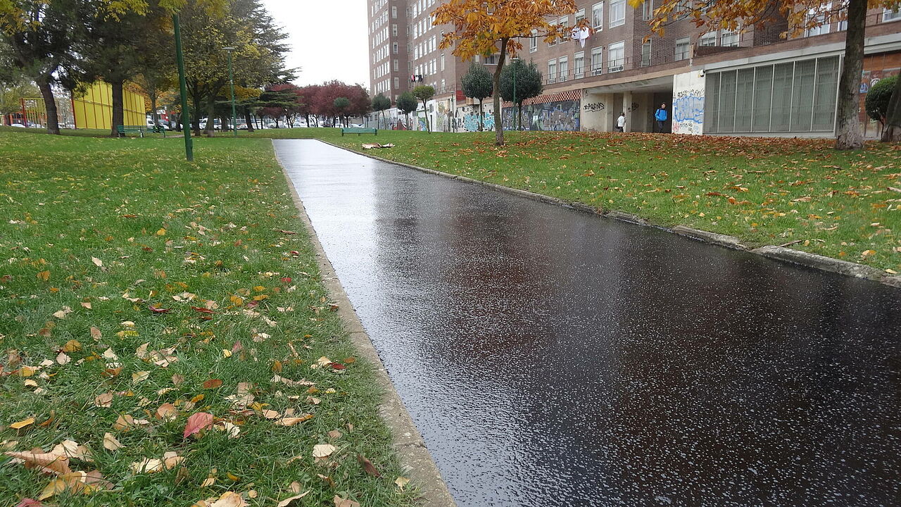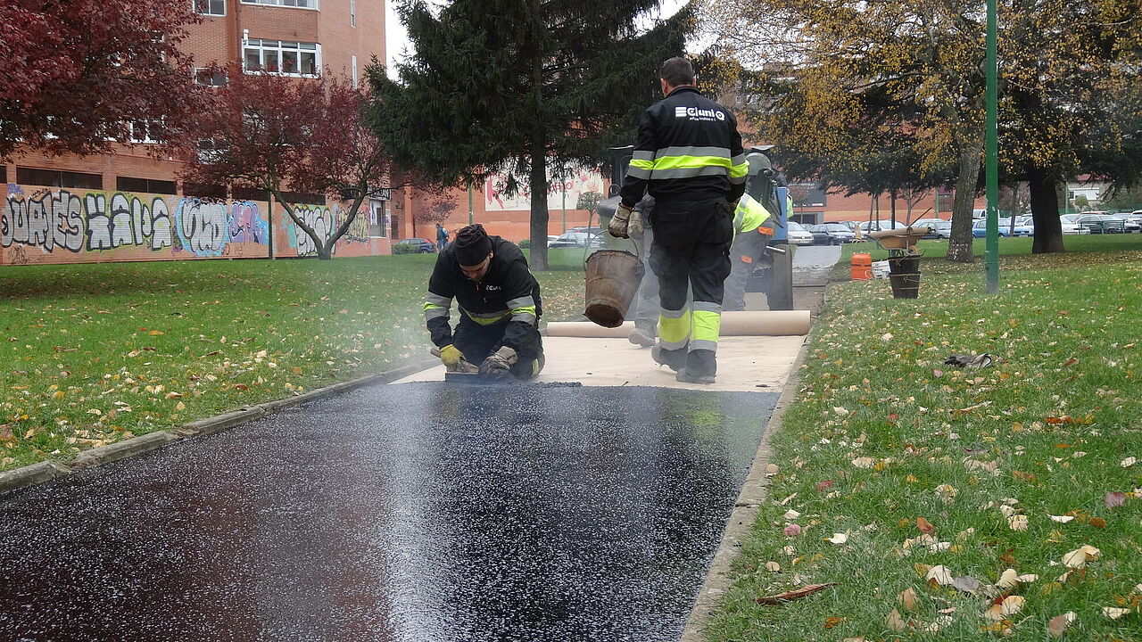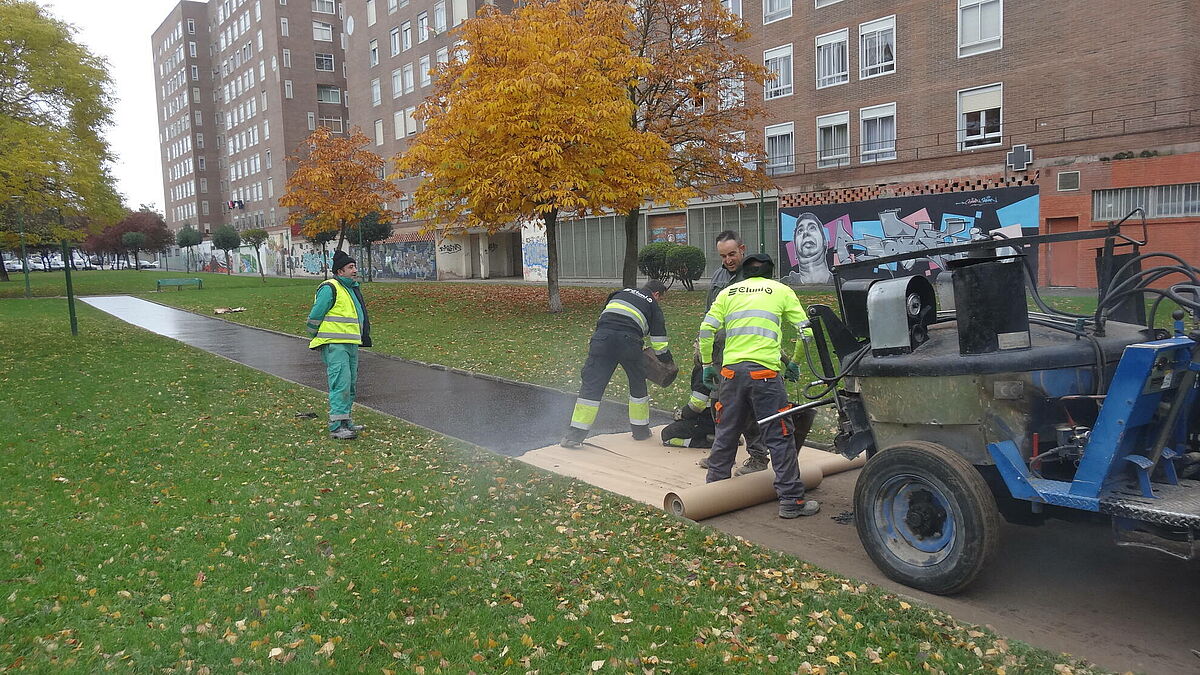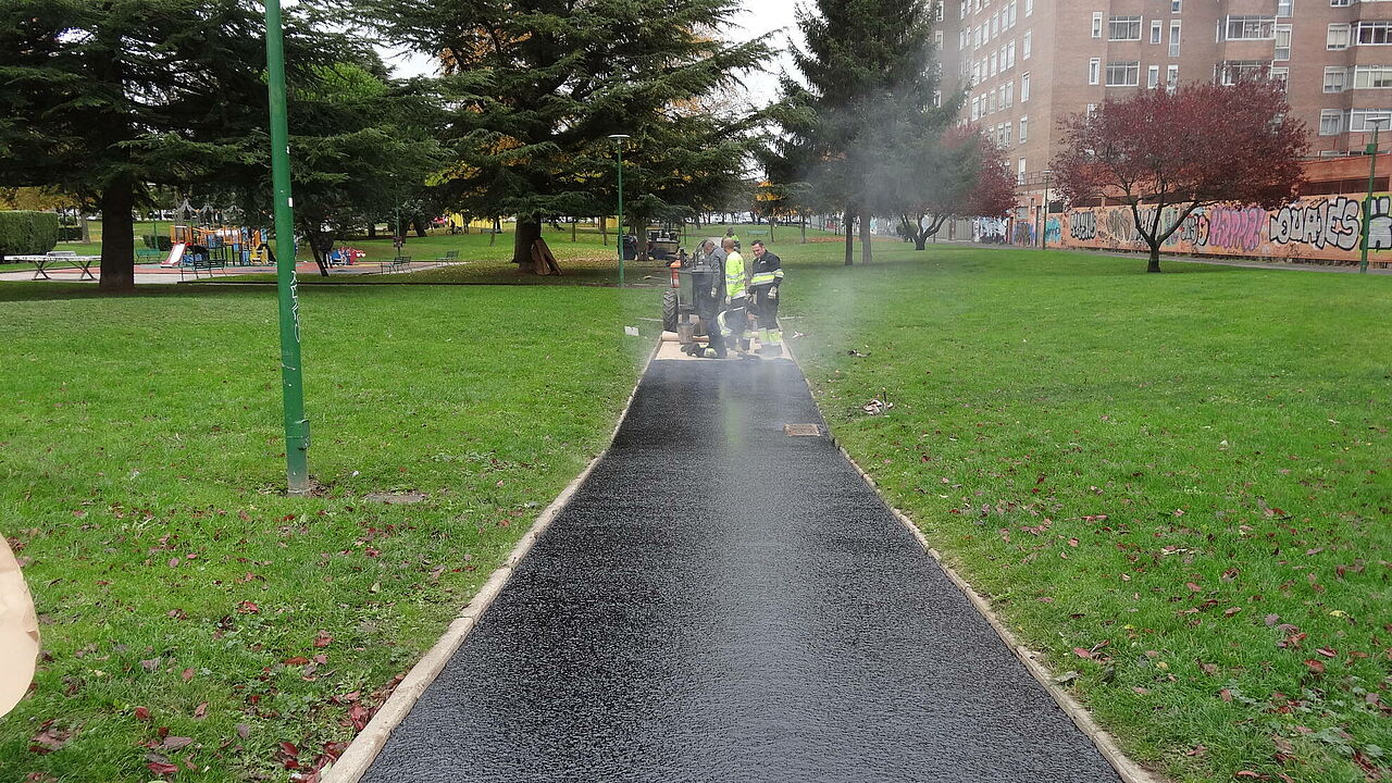 Los técnicos del Ayuntamiento de Burgos han apostado de nuevo por el asfalto fundido para renovar el pavimento del conocido parque de Gamonal Buena Vista.