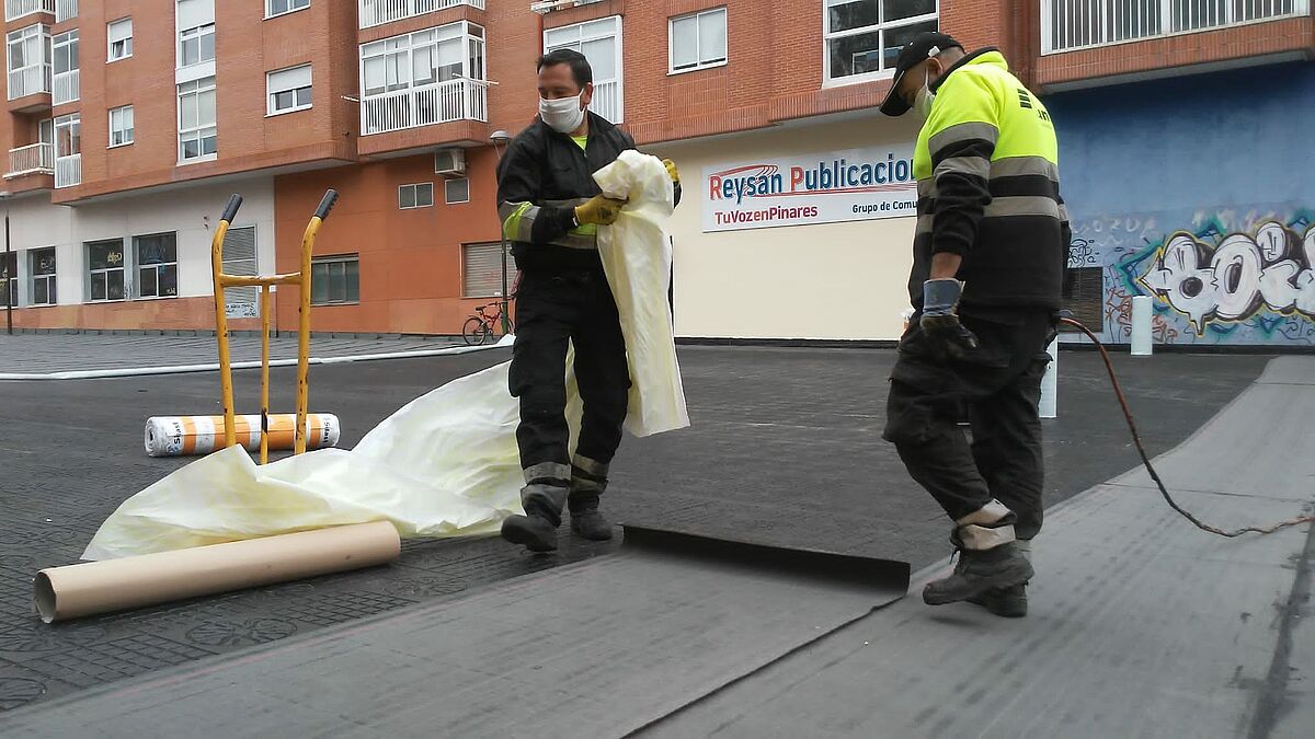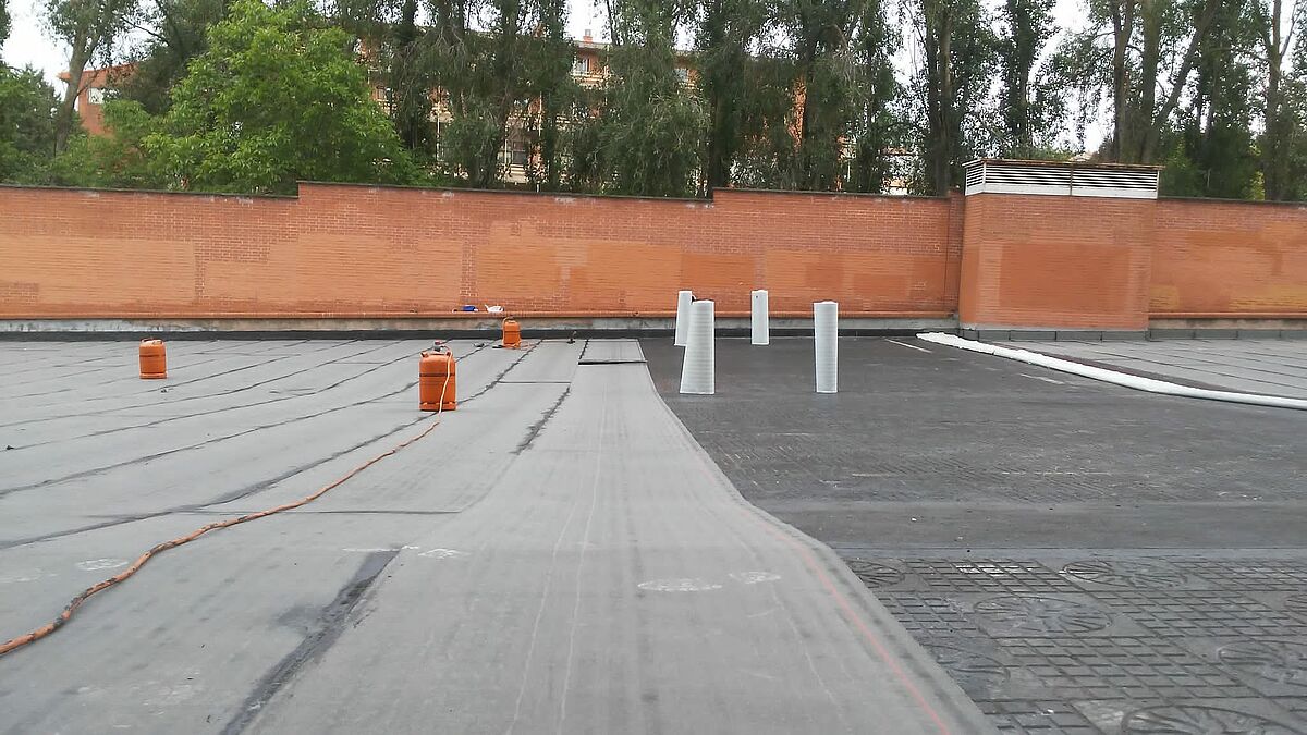 Clunia asfaltos fundidos comienza un nuevo proyecto de impermeabilización mediante sistema bicapa mixto SOBRE BALDOSA HIDRÁULICA SIN DEMOLICIÓN.