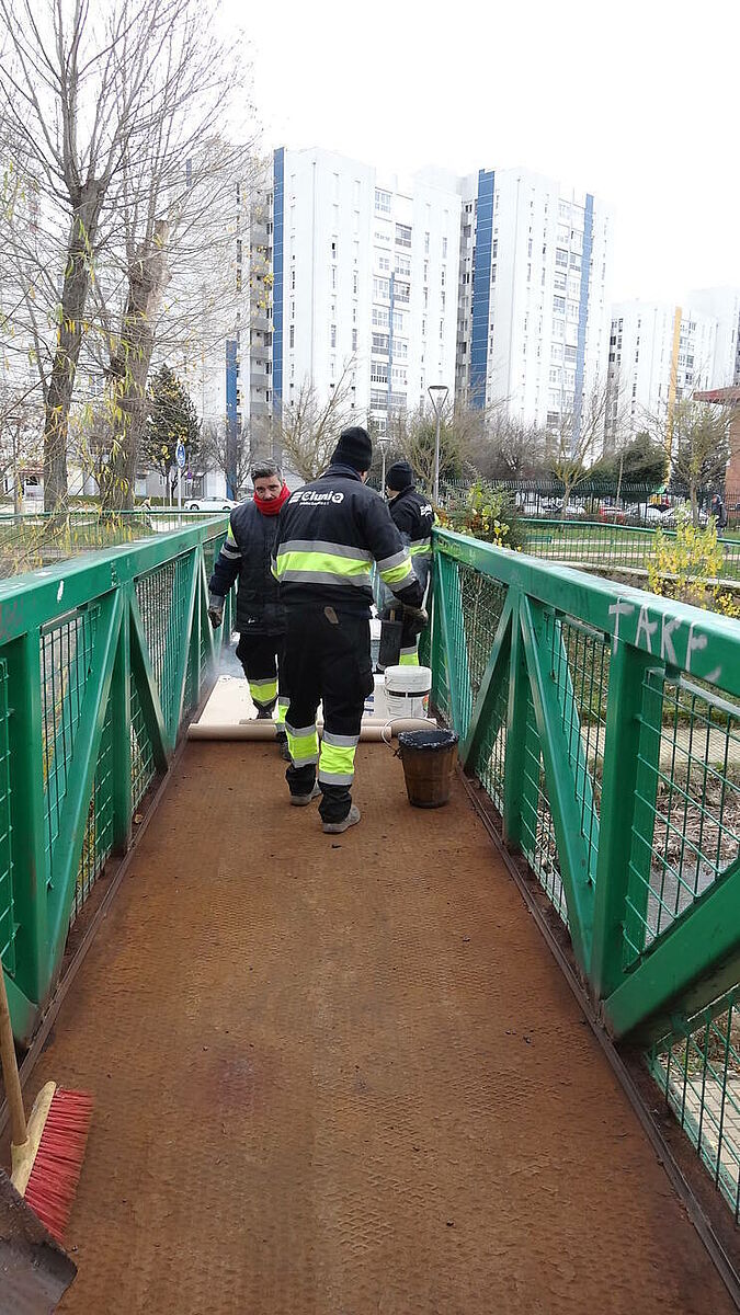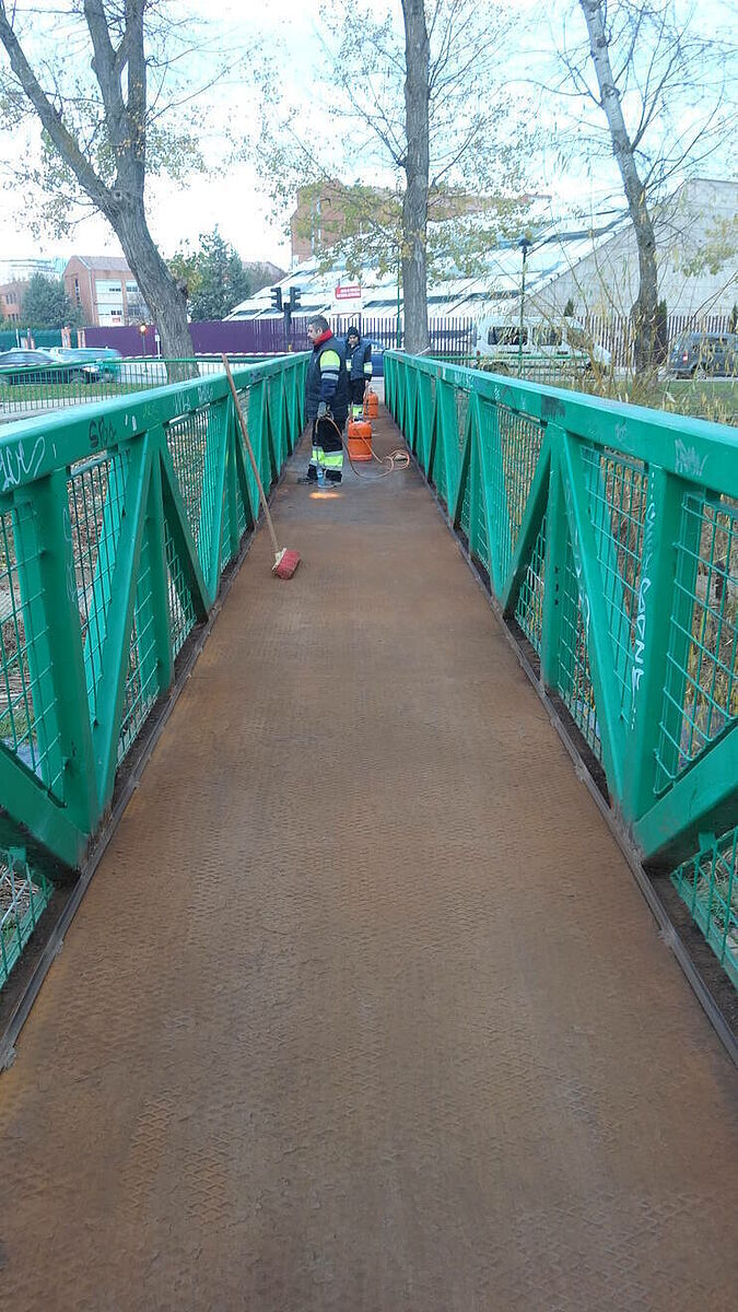 Las ventajas que ofrece para las pasarelas sobre los puentes son su protección al óxido gracias a su propiedad impermeable, su capacidad antideslizante, facilidad de ejecución y sobre todo su acceso inmediato, evitando molestias a los peatones que ha diario cruzan el río Vena.