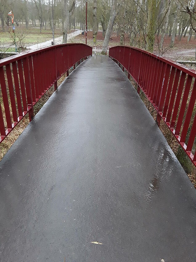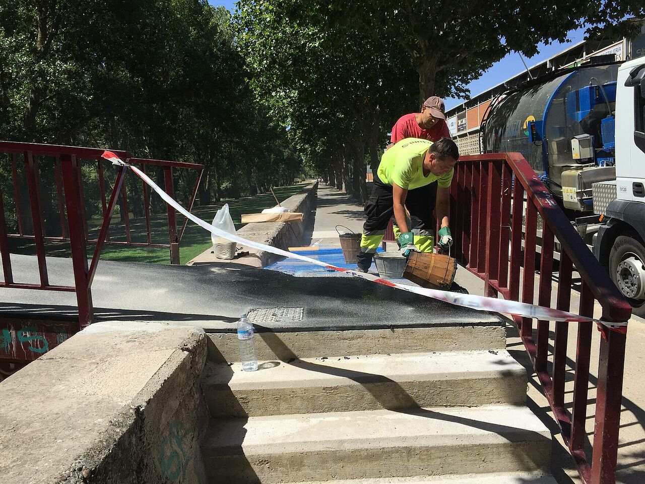 El Ayuntamiento de Burgos ha vuelto a confiar en la versatilidad del asfalto fundido para renovar el pavimento de las pasarelas del parque de la Quinta.