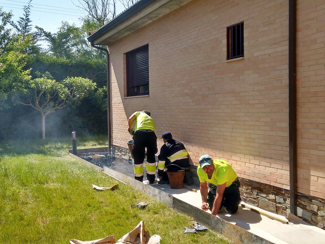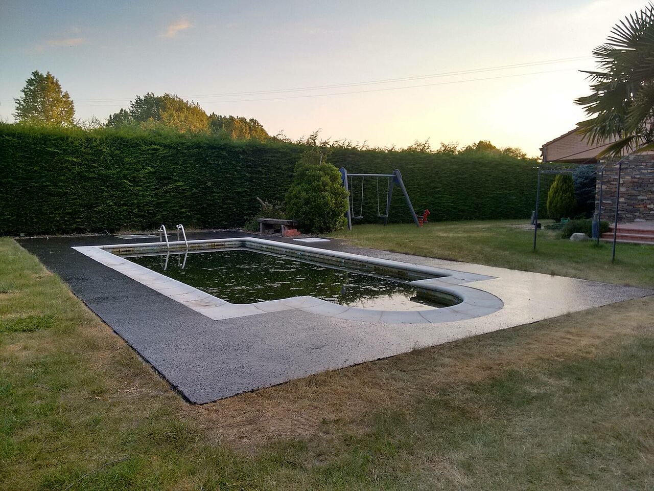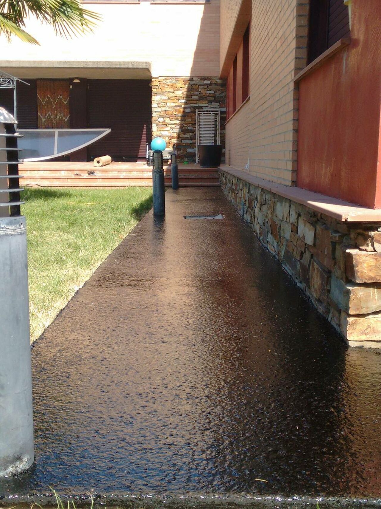 Pavimentación piscina y aceras con asfalto fundido pulido