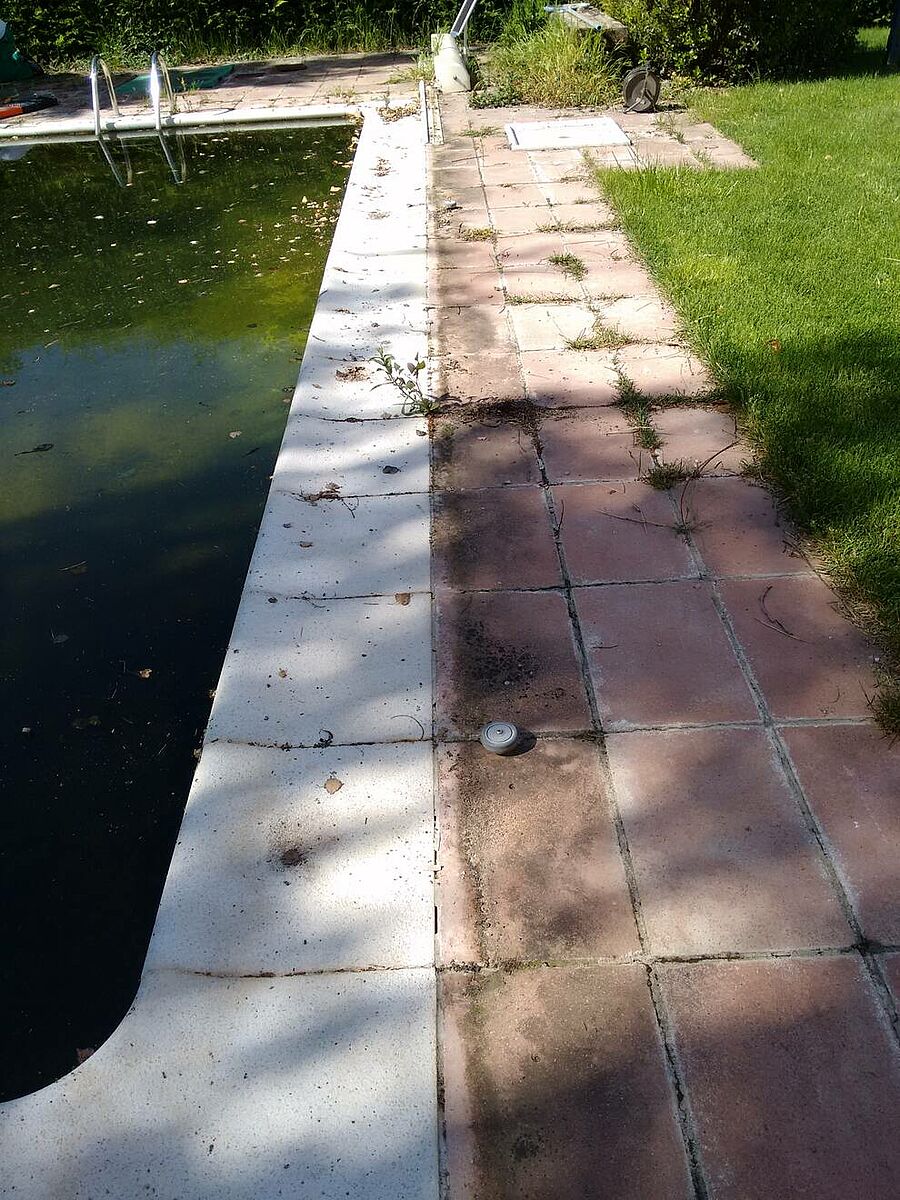 En éste proyecto nos encontramos con que la acera perimetral de la piscina se encuentra muy deteriorada, debido a que la aparición de malas hiervas ha ido despegando las baldosas.