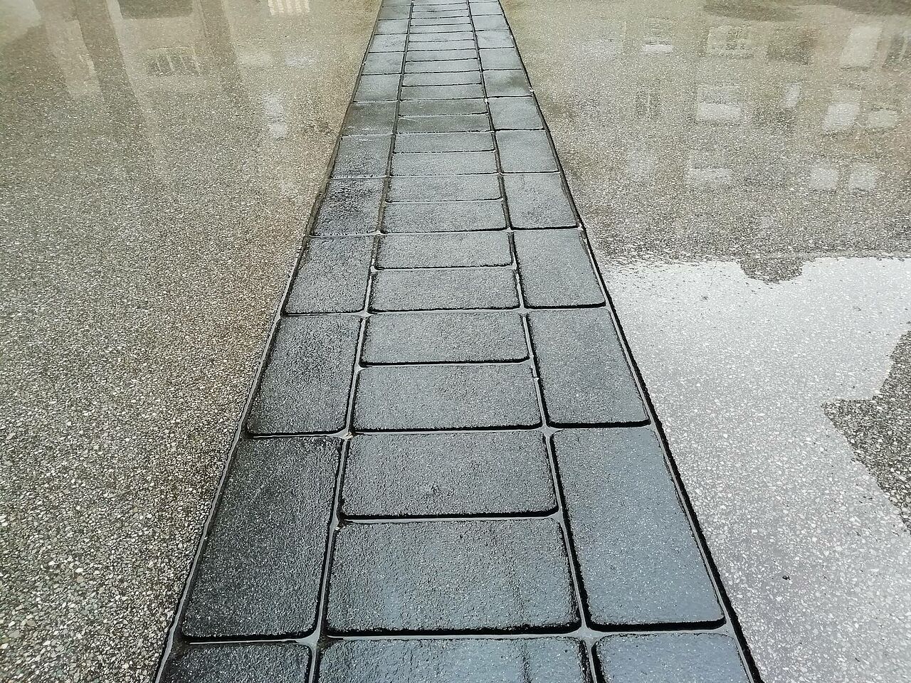 Sistema bicapa sobre baldosa + Asfalto fundido pulido