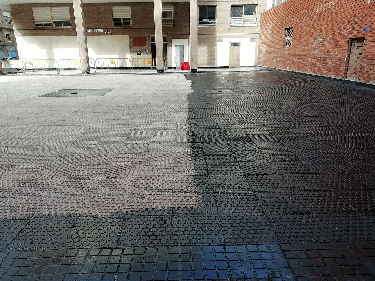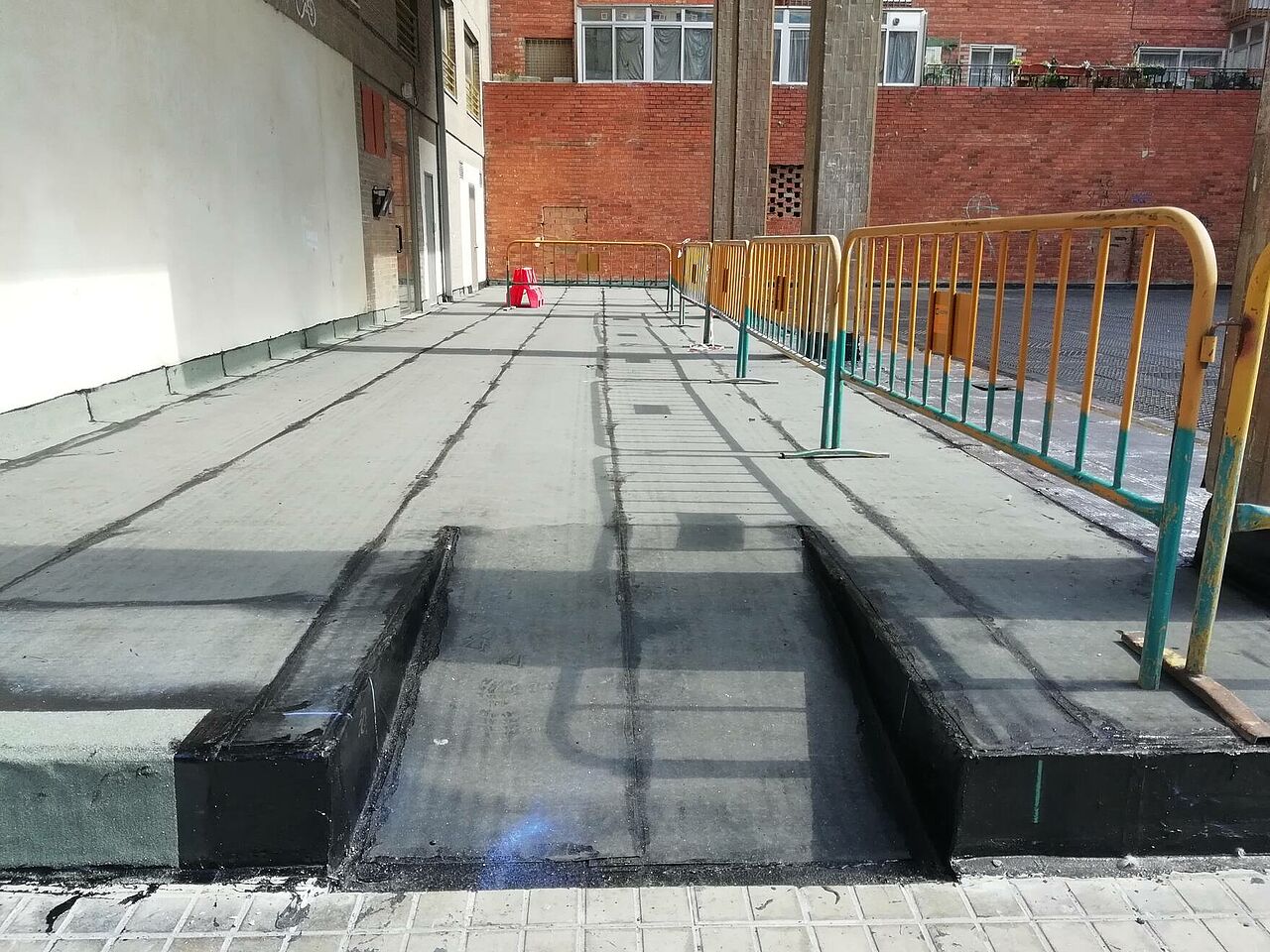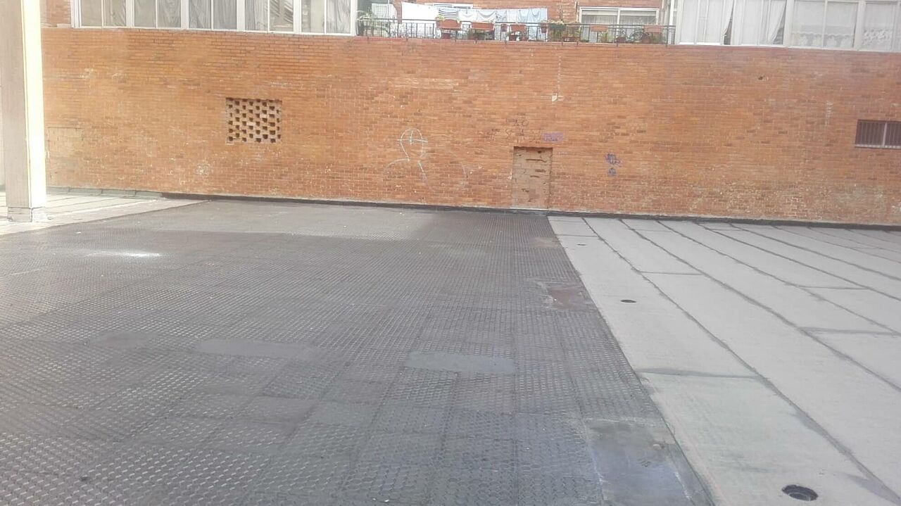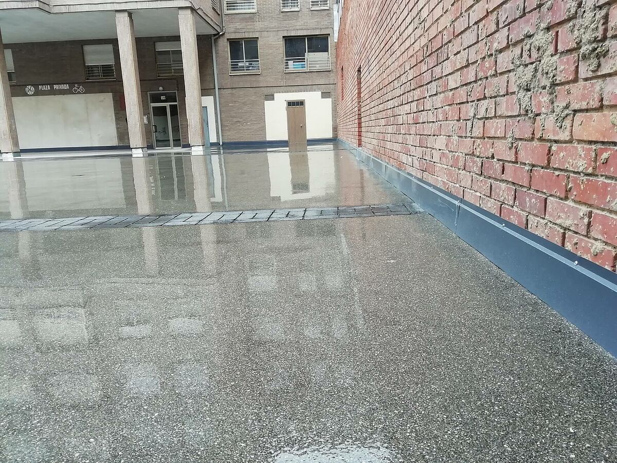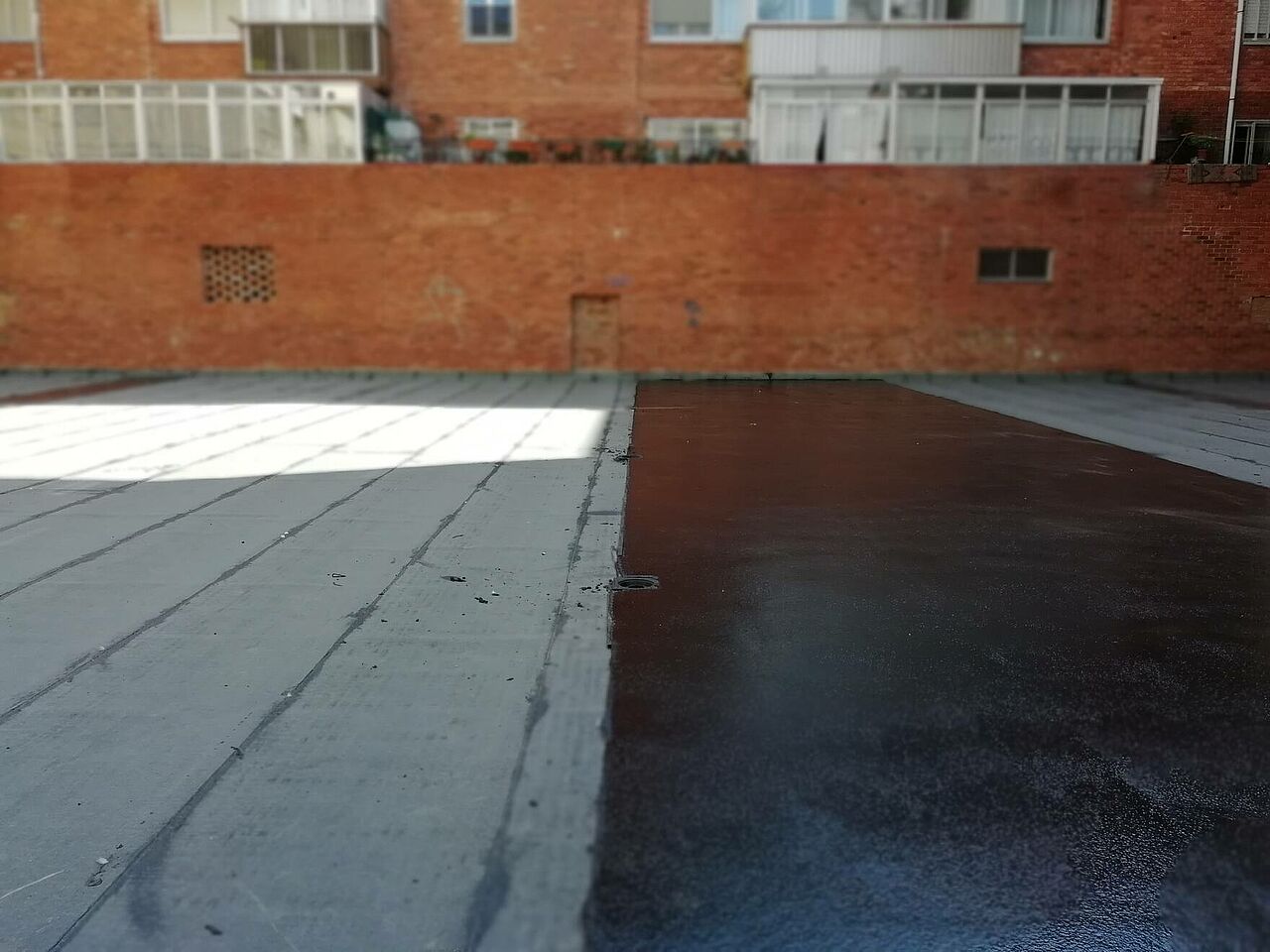 El proyecto consiste en realizar una impermeabilización sobre la baldosa existente realizando unas mínimas preparaciones del soporte, aplicación del asfalto fundido y posterior pulido.