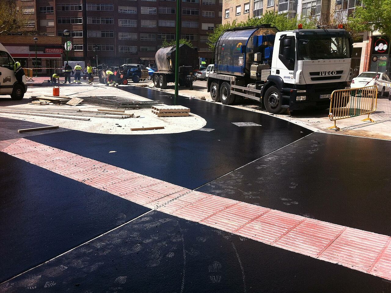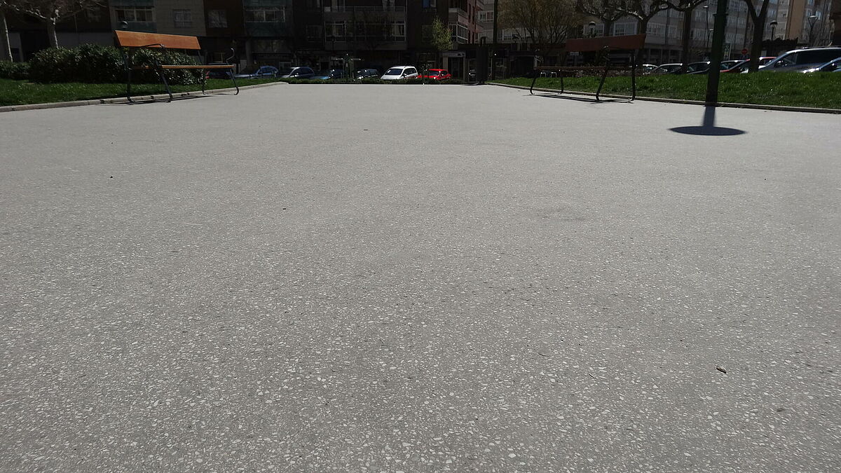 Se ha planificado la ejecución de una zona de juegos para niños, por eso se ha realizado como acabado final un pulido antideslizante, el cual dota al asfalto de gran seguridad y confort para caminar, patinar o andar en bicicleta.