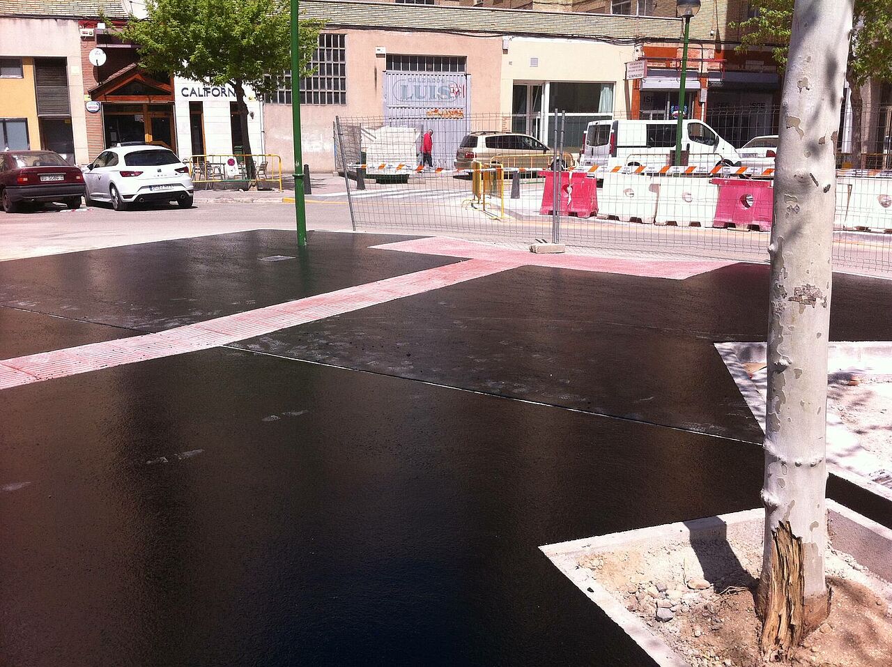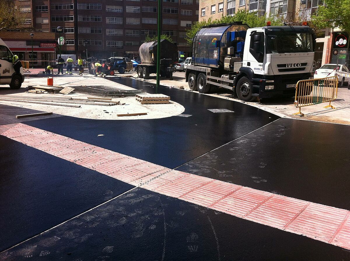 El asfalto fundido ha sido de nuevo el pavimento para la remodelación de la plaza San Bruno.