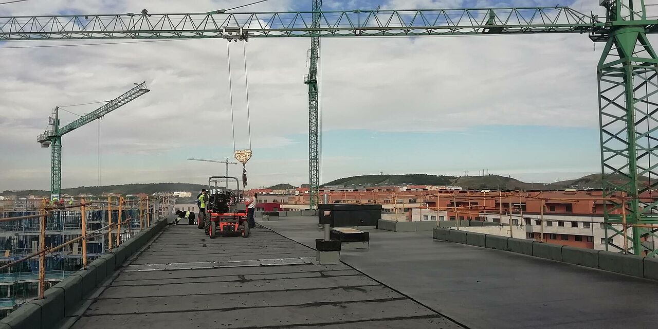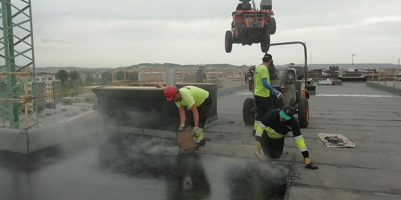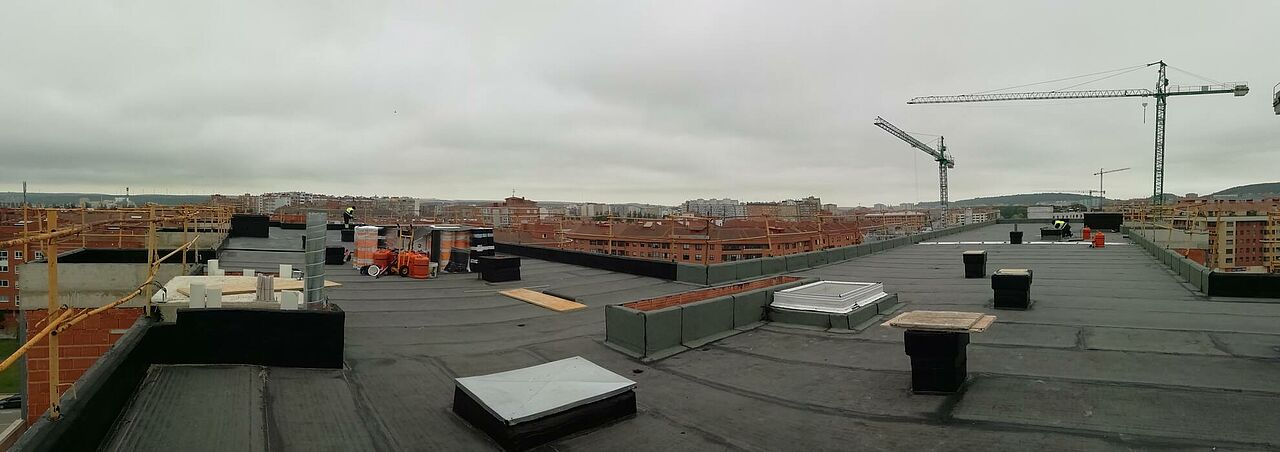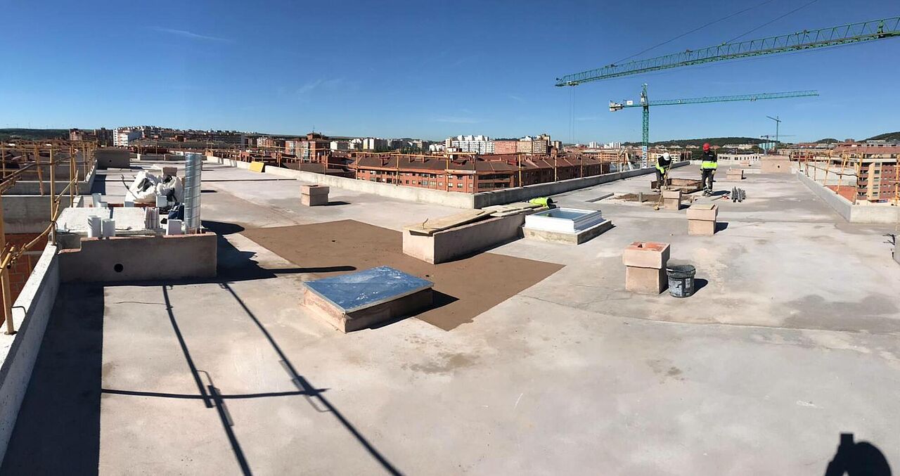 Para dotar de las máximas calidades al edificio, ha decidido emplear el sistema bicapa mixto para impermeabilizar y pavimentar tantos los áticos como la futura plaza de uso común.