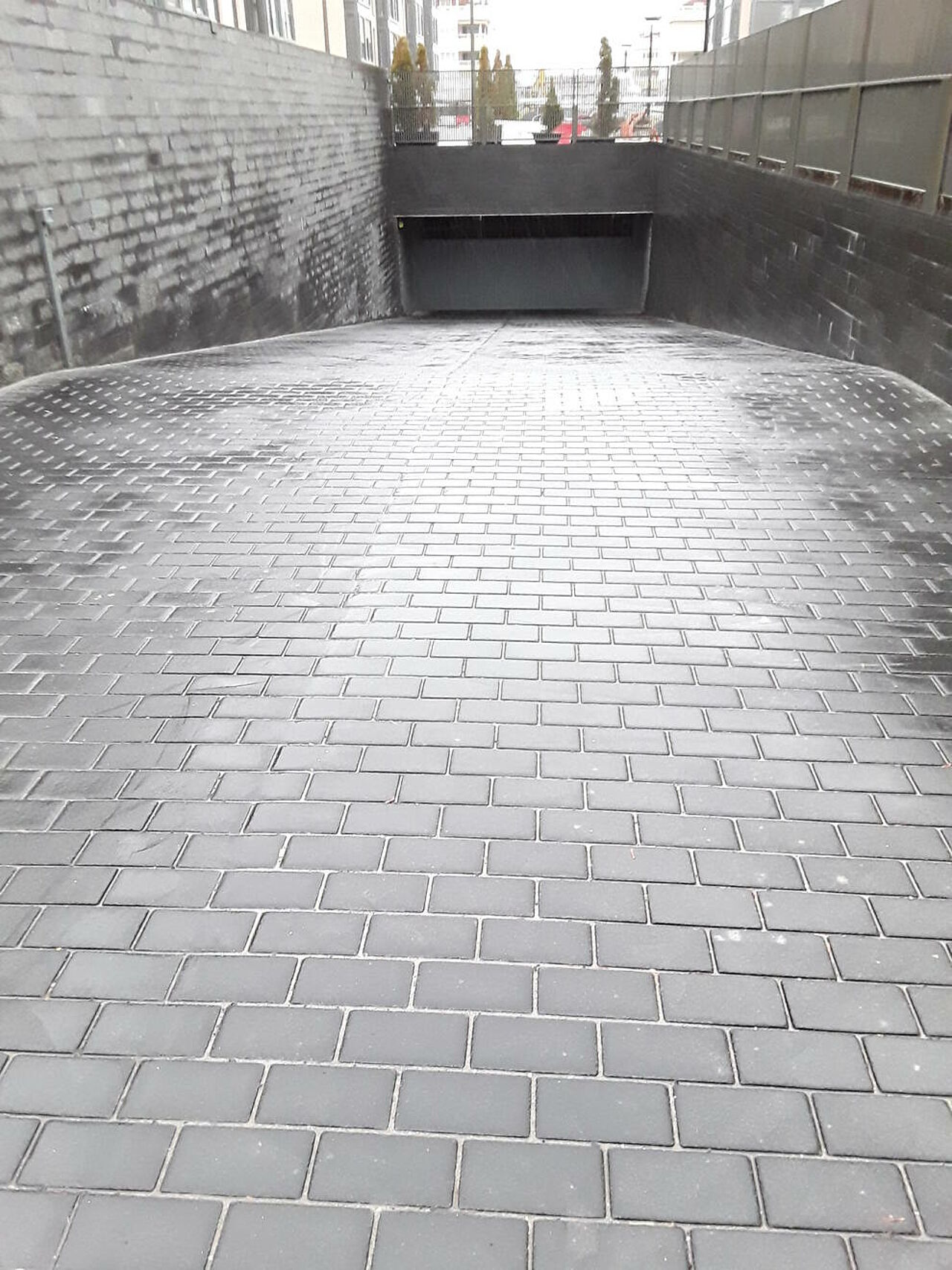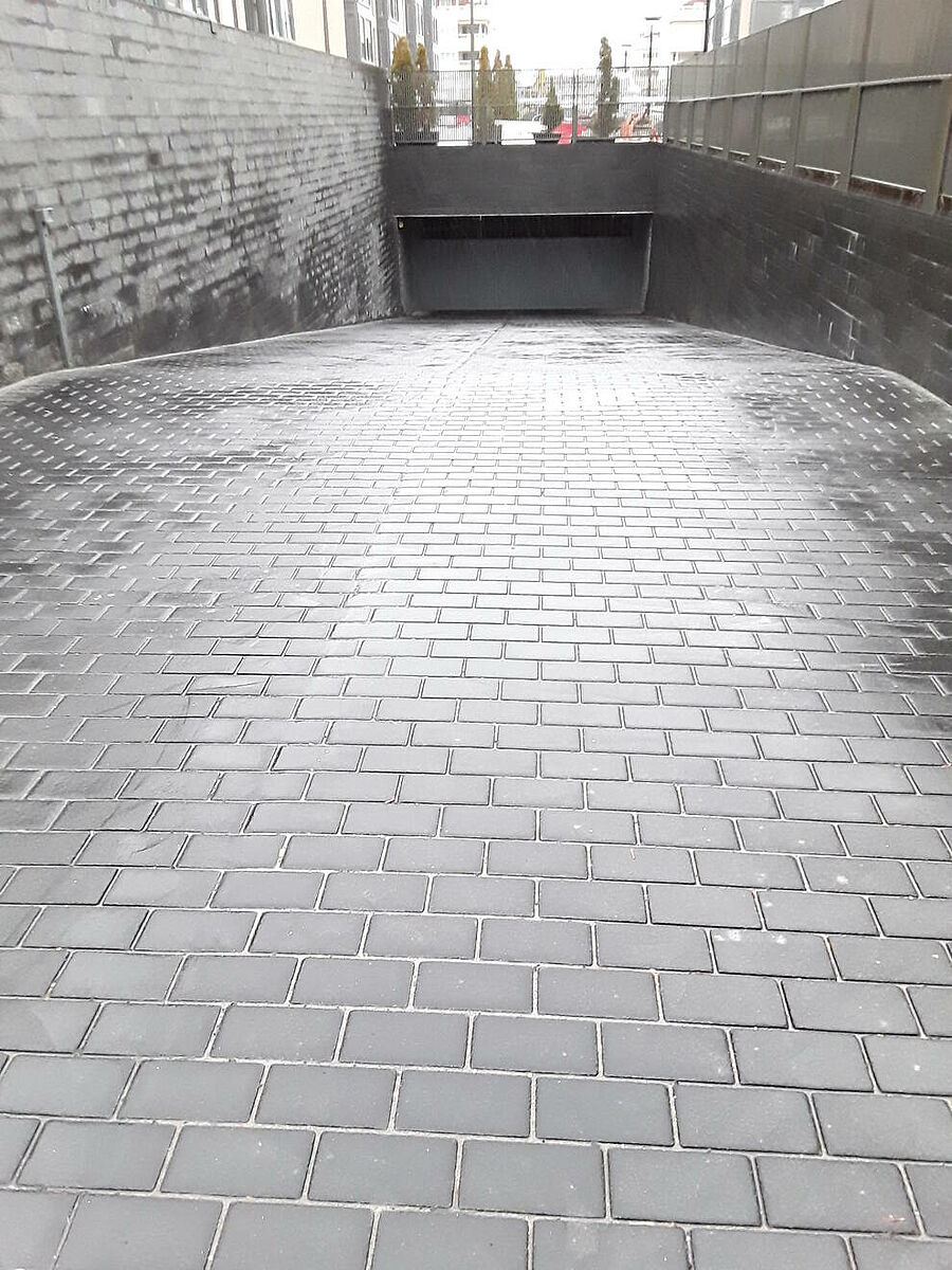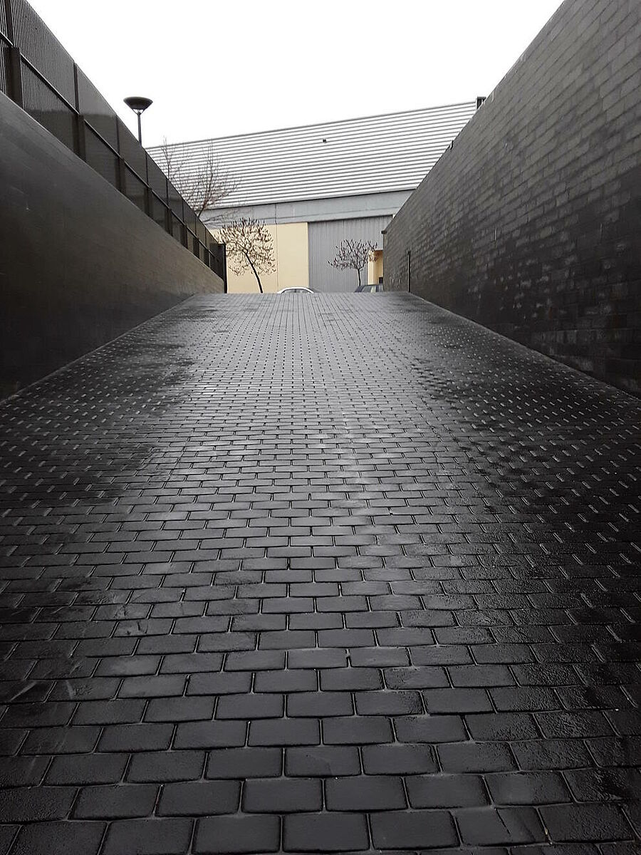 La dirección técnica que dirige los trabajos de reparación en la urbanización privada Corona de Castilla, se ha decidido por la solución del asfalto fundido en las rampas de acceso a los garajes, dotando a este elemento de gran durabilidad y elegancia.