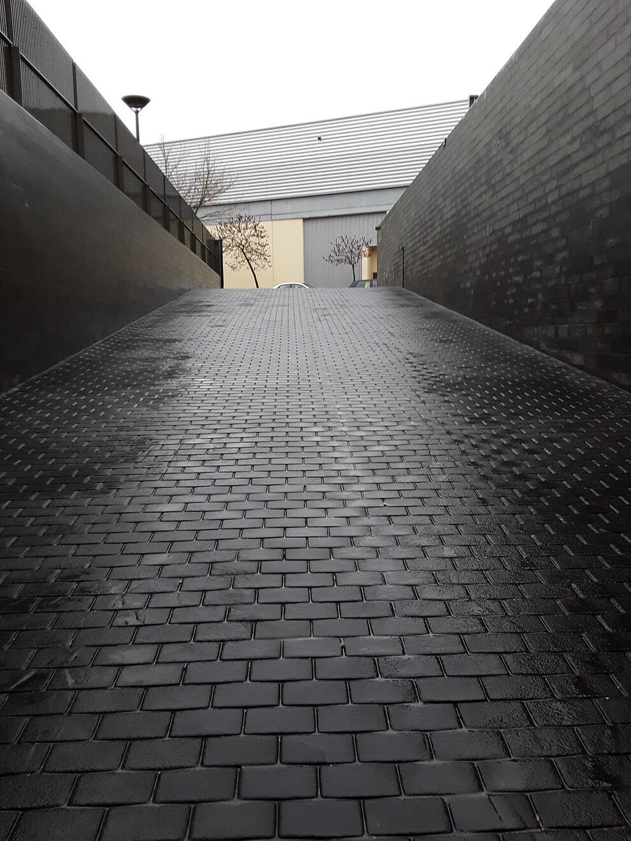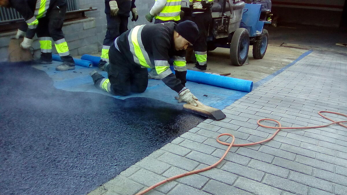 - Ahorro económico pues no exige apenas demoliciones, el extendido del asfalto fundido se ha realizado directamente sobre la baldosa.