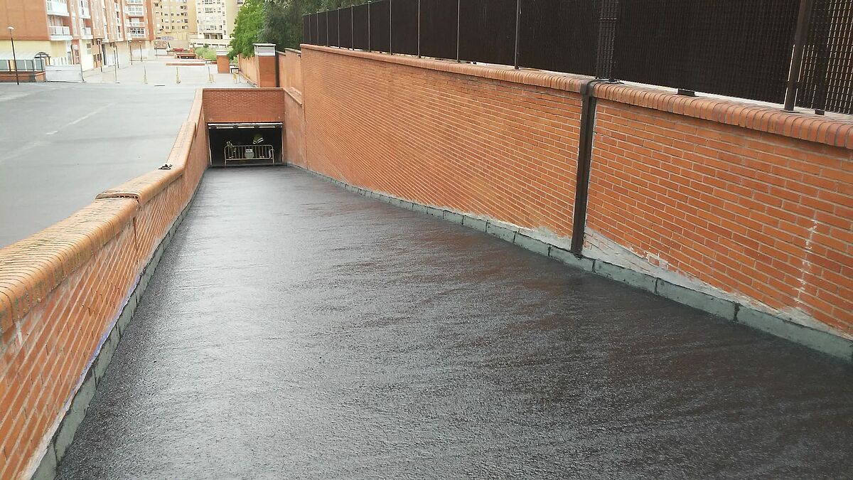 El equipo de Clunia asfaltos fundidos ha terminado la impermeabilización de una nueva rampa de acceso a garajes.