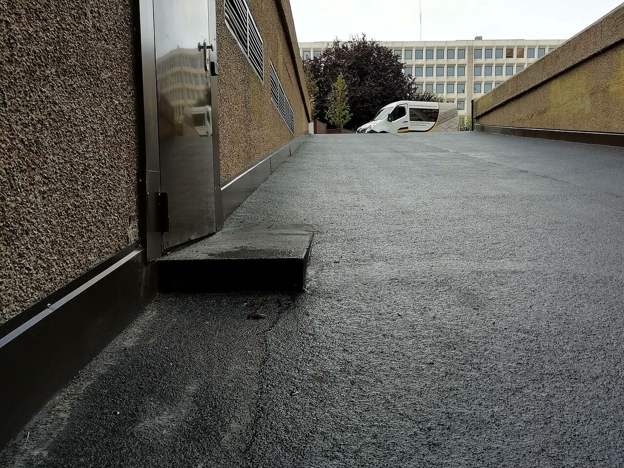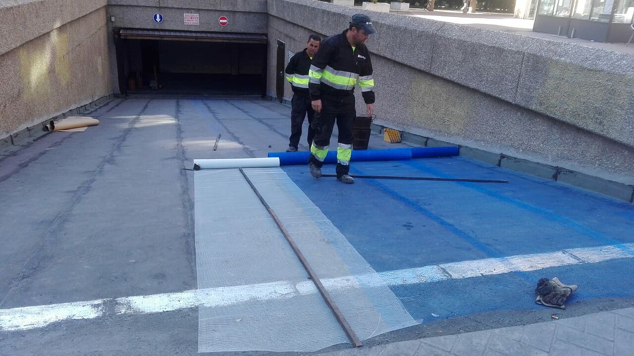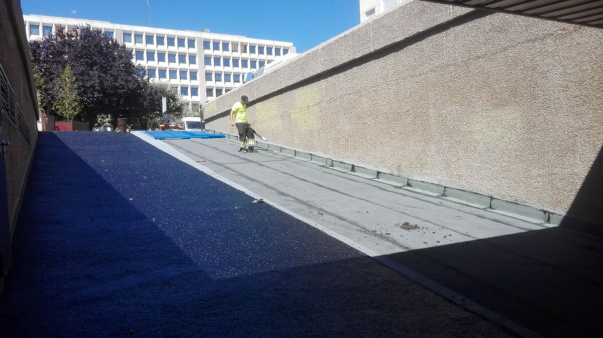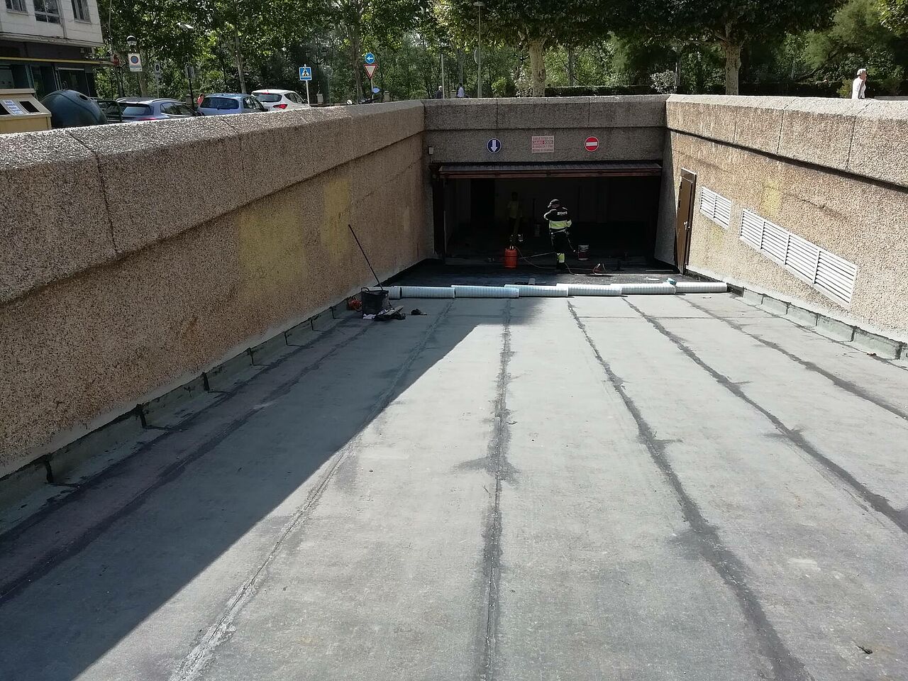 El equipo de Clunia asfaltos fundidos ha terminado la impermeabilización de la rampa de garaje en el Barrio de Villa Pilar.