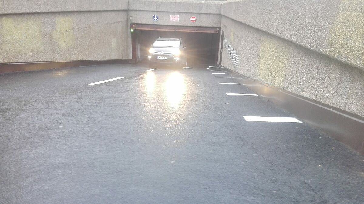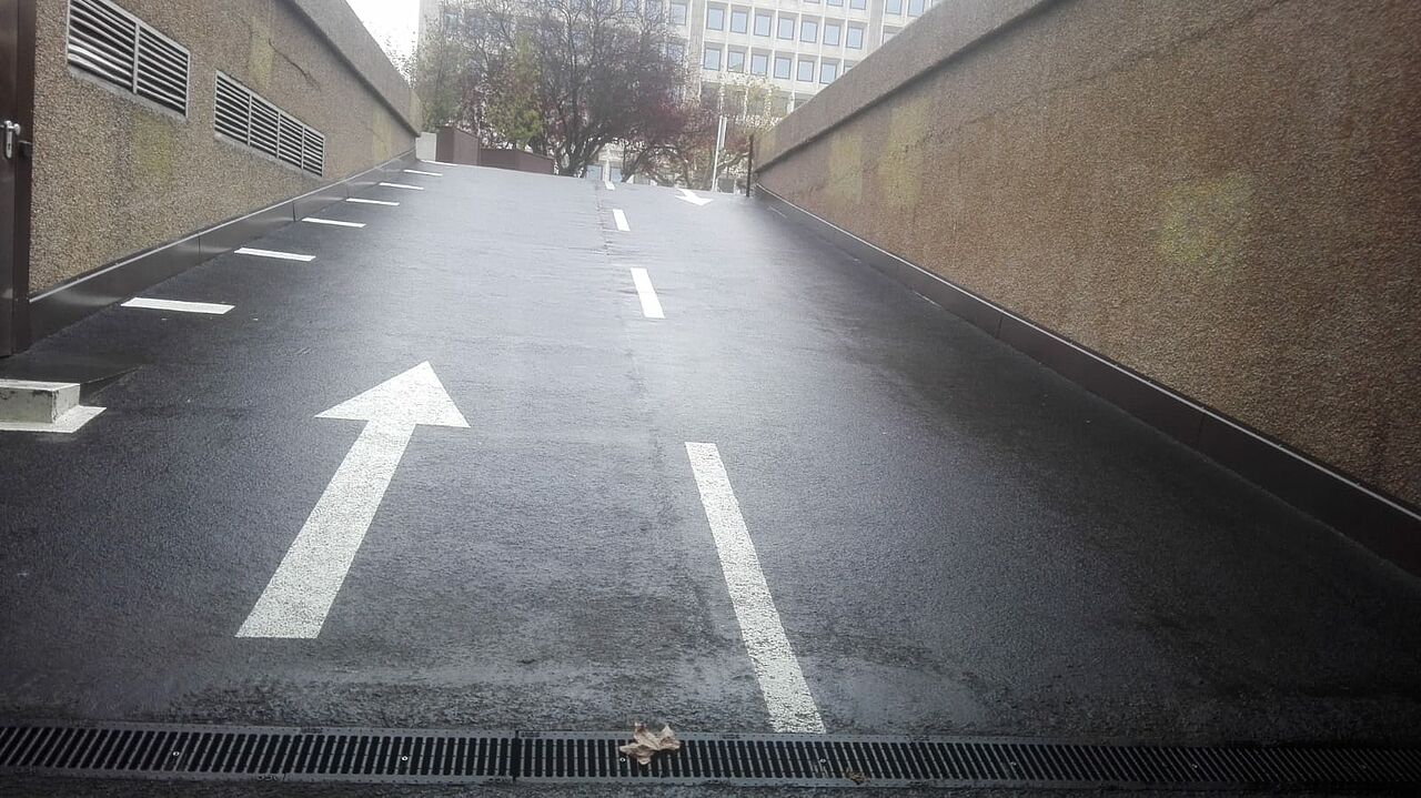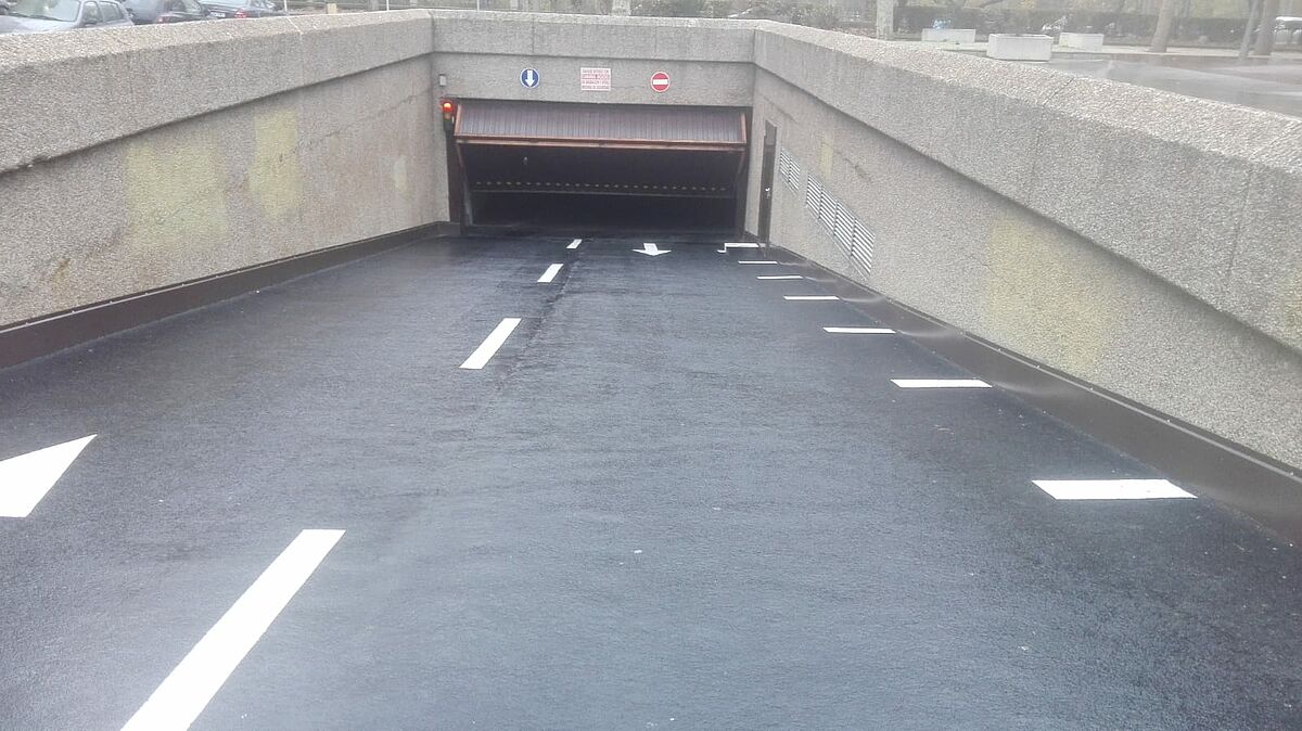 Se trata de una única rampa de garaje para unos 300 vehículos con lo que se necesita un material que soporte el tráfico, que no resbale y las condiciones climatológicas no lo deterioren.