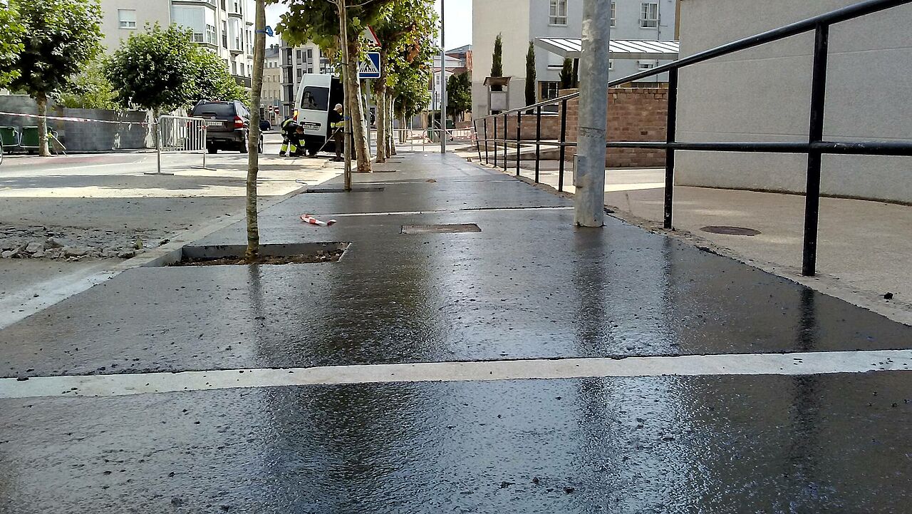 El Ayuntamiento de Reinosa ha decidido confiar en el asfalto fundido para renovar los pavimentos de la ciudad. A causa de un clima en el que son frecuentes las heladas y nevadas, son abundantes los resbalones y rápido deteriororo de los pavimentos.