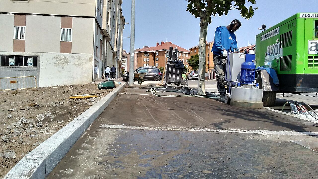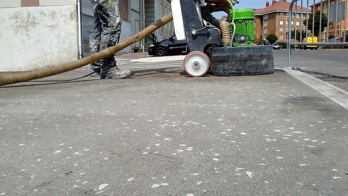 El proyecto ejecutado por el equipo de Clunia asfaltos fundidos, consiste en la pavimentación de una calle en rampa y posterior pulido tipo Coliseum, como tratamiento antideslizante y estético.