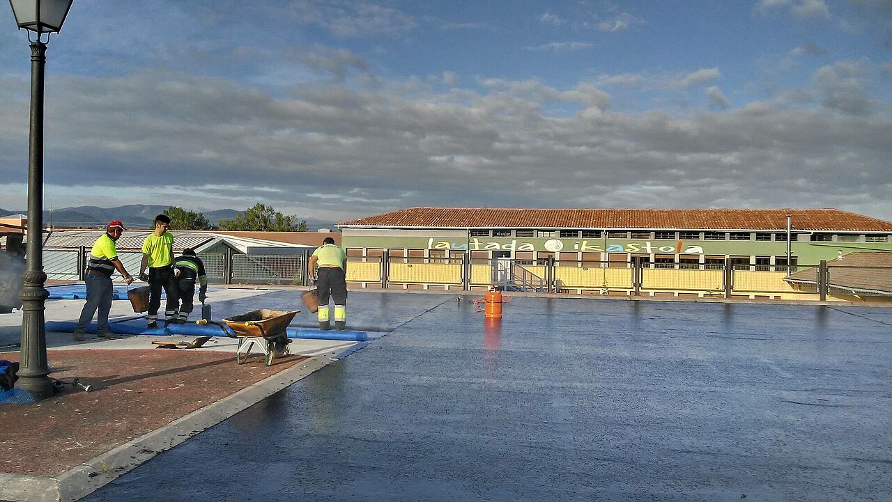 El Ayuntamiento de Salvatierra lleva muchos años aplicando el asfalto fundido en sus calles y ha confiado de nuevo en él para la pavimentación del parking exterior.