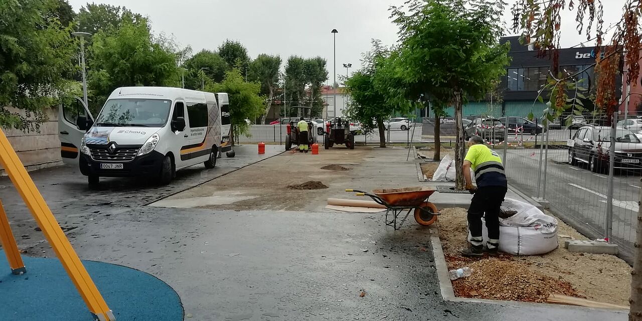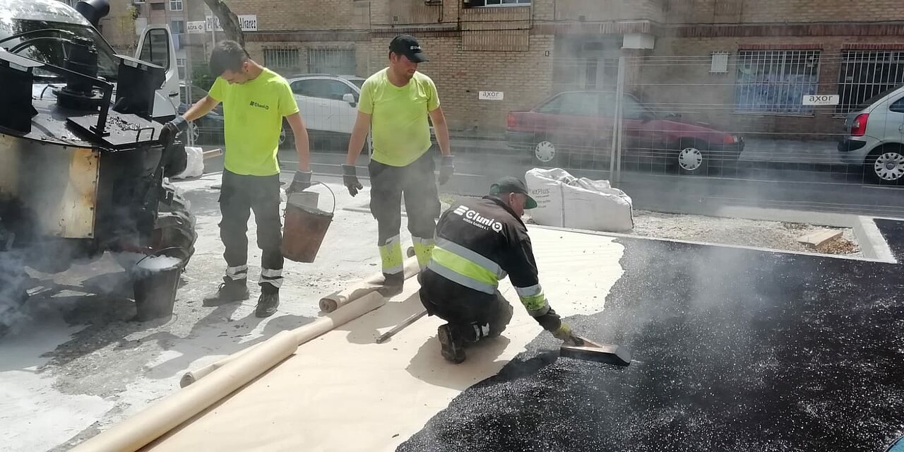La sencilla aplicación del asfalto fundido permite jugar con las curvas en los encuentros con las zonas de juegos, añadiendo así mayor originalidad a los trabajos realizados.