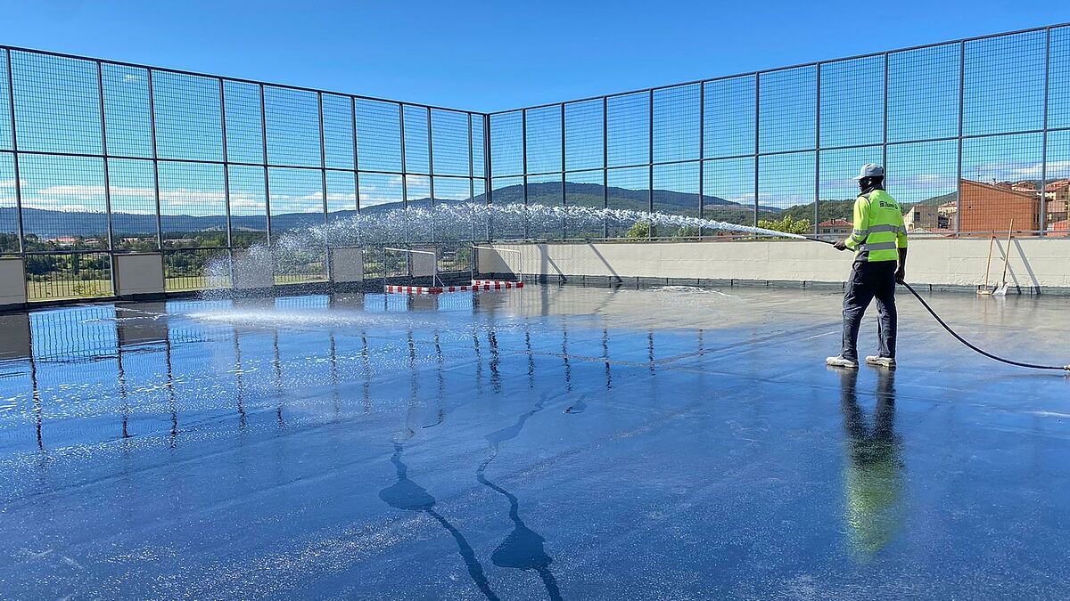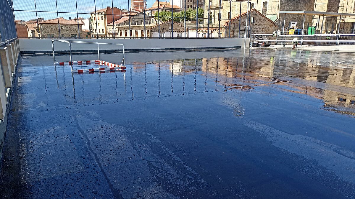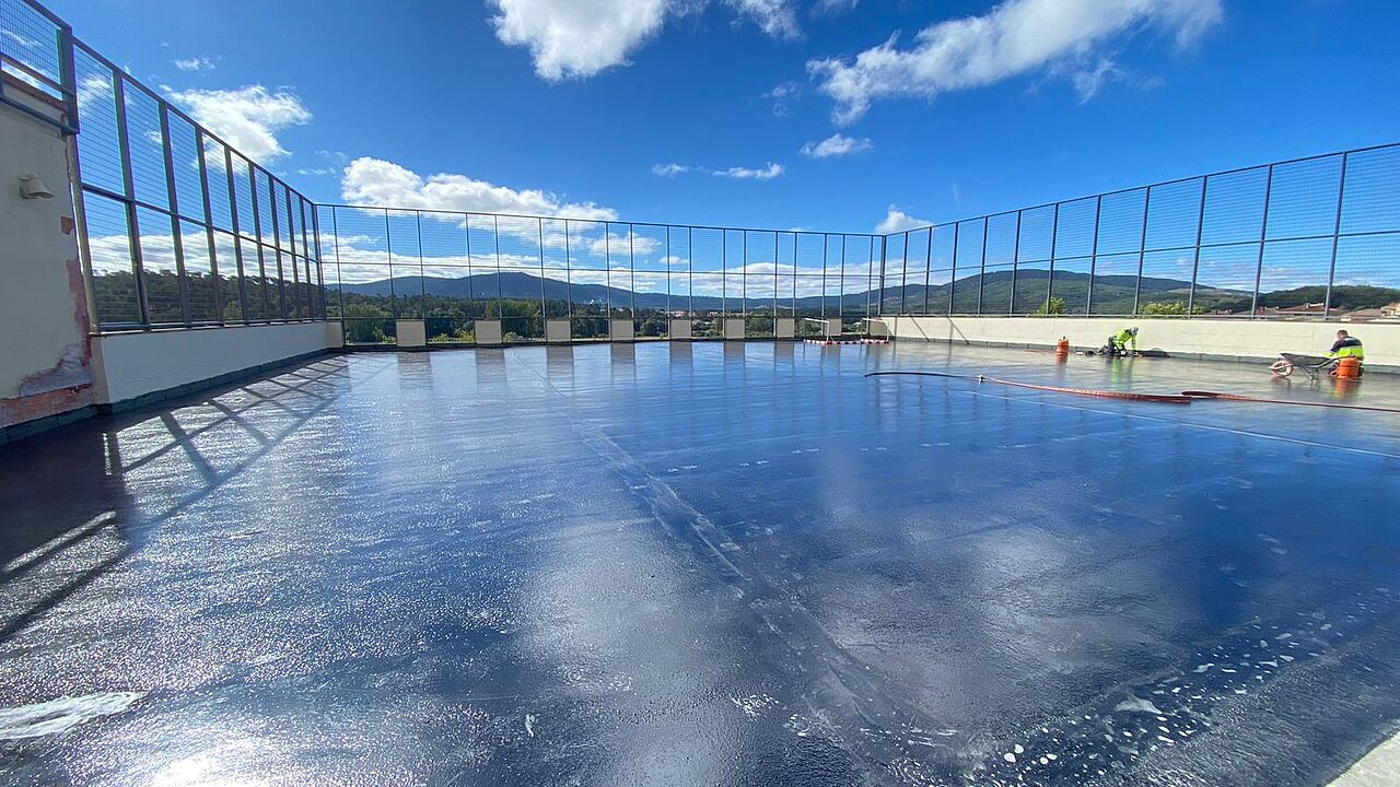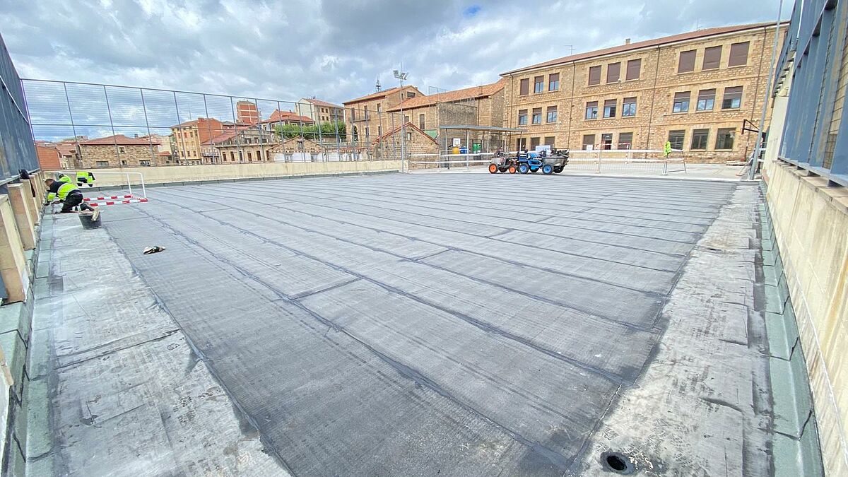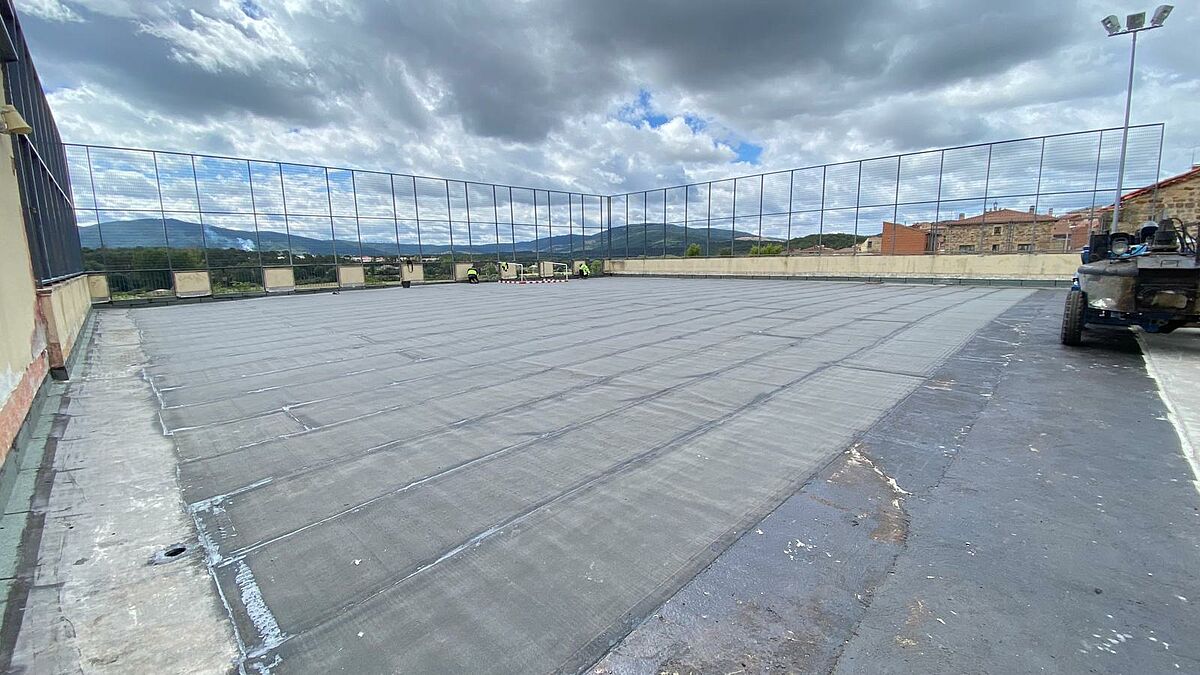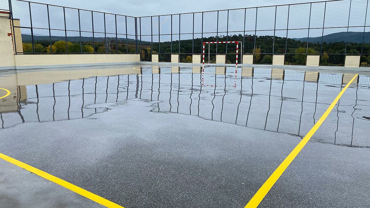 Descripción del proyecto: Finalizamos el proyecto de rehabilitación en el patio del colegio Veracruz de Quintanar de la Sierra que sufría de goteras persistentes debido a deficiencias en la impermeabilización. La solución adoptada por la Junta de Castilla y León ha sido la de aplicar asfalto fundido, un material ya conocido por su resistencia y estanqueidad. Gracias a sus propiedades, no solo eliminó las goteras que anteriormente no lograron resolver, sino que también se creó una superficie uniforme, antideslizante y segura para el juego de los niños.