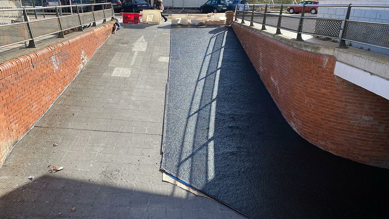 Descripción del proyecto: Aplicar una capa de asfalto fundido sobre las baldosas existentes presenta varias ventajas significativas, tanto en términos de durabilidad como de eficiciencia.