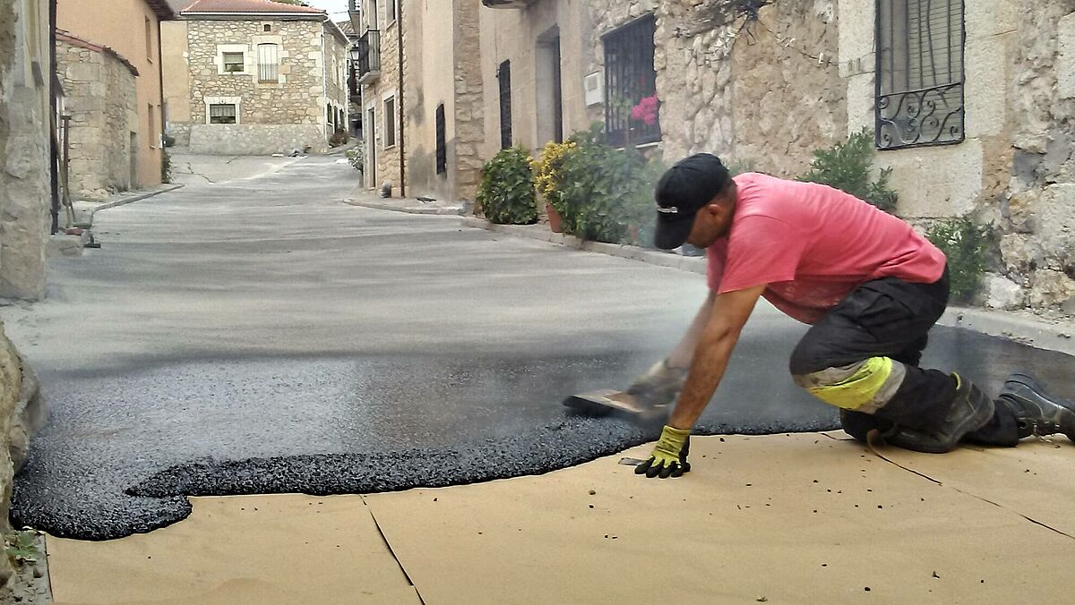 El Ayuntamiento de Villalbilla de Gumiel ha decidido sustituir el pavimento de sus calles de hormigón por asfalto fundido. Éstas se encuentran muy deterioradas debido a las heladas y bruscos cambios de temperatura, que han ido disgregando el hormigón y creando abundantes grietas. Al sustituirlo por asfalto fundido se benefician entre otras cosas de su propiedad antideslizante y resistencia a la sal y a las heladas.