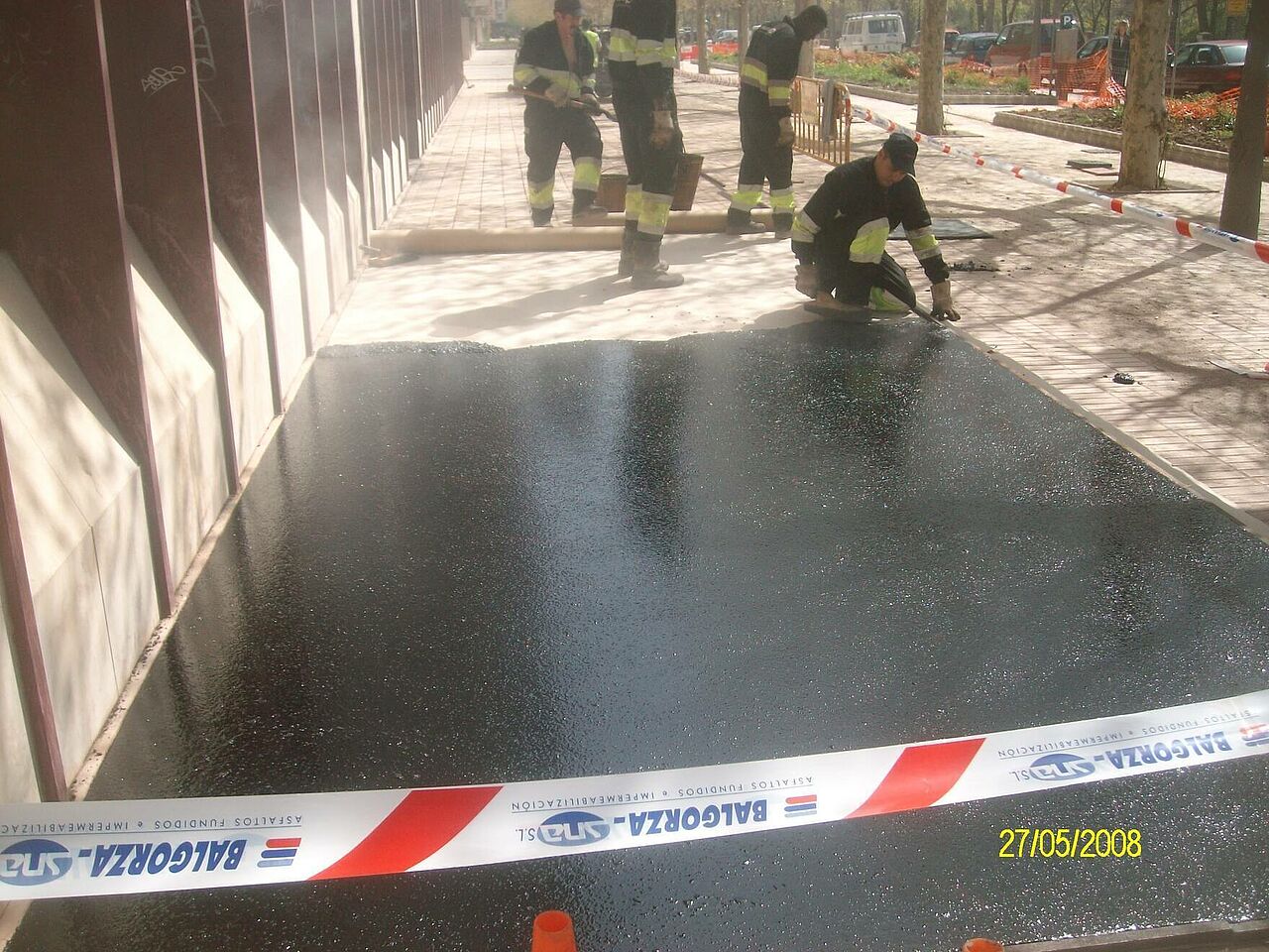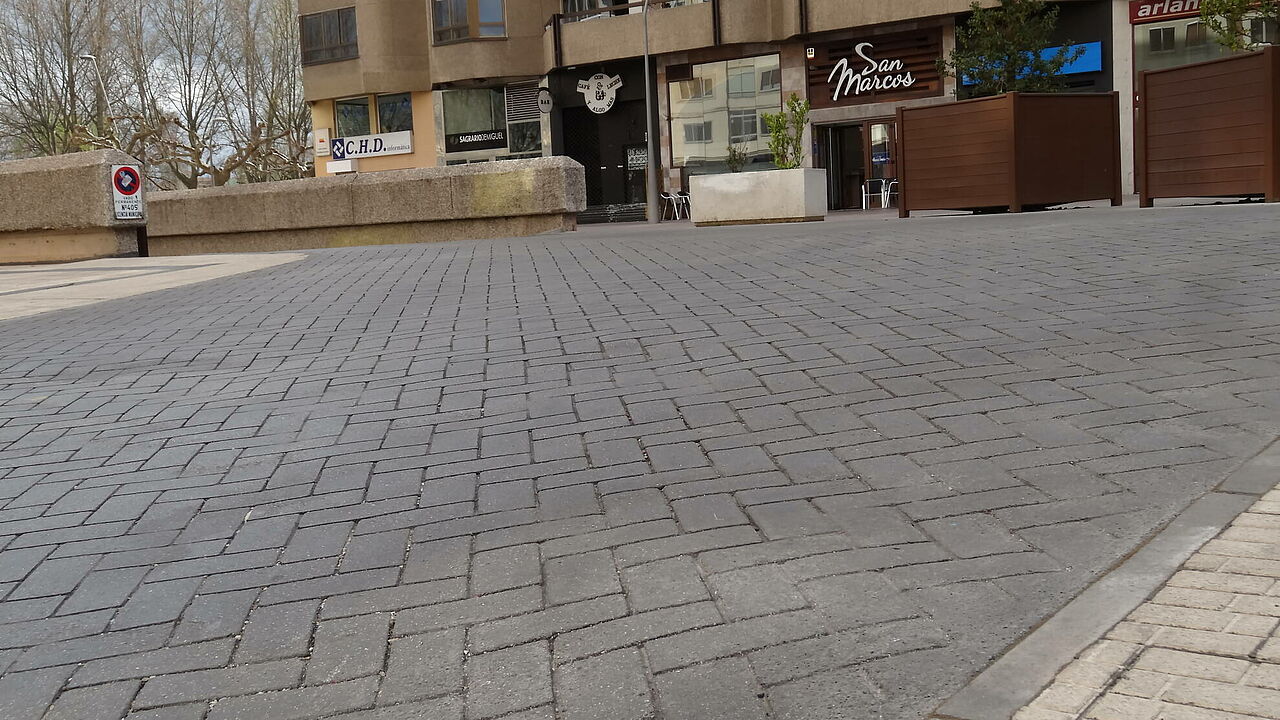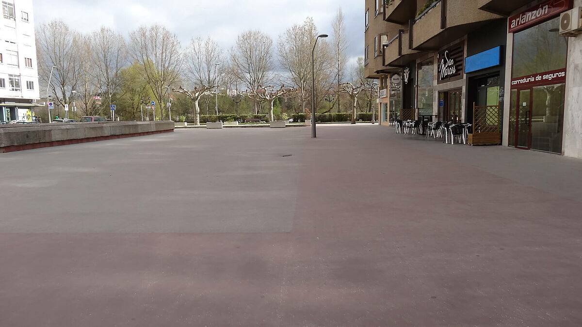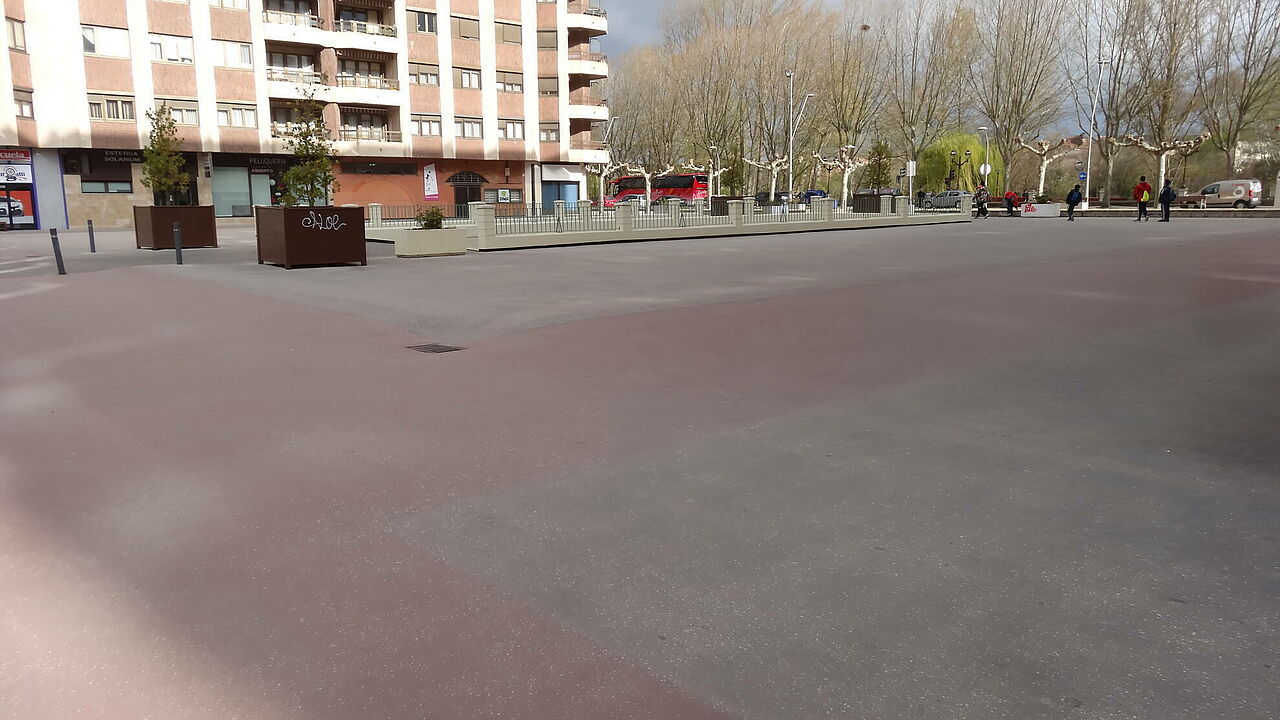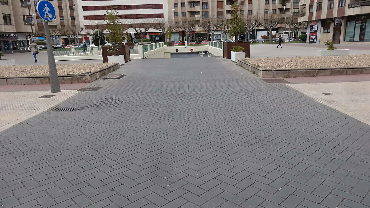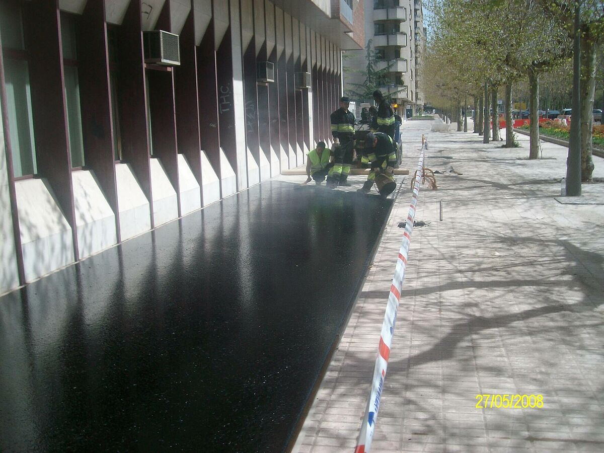Se han ejecutado los accesos a garajes con asfalto fundido impreso y el resto con asfalto fundido de color negro y rojo y posterior pulido, ésto confiere al pavimento de un alto nivel decorativo.