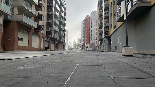Pavimentación sobre baldosa. Asfalto fundido pulido[Leer más]