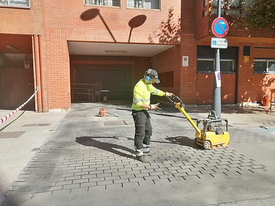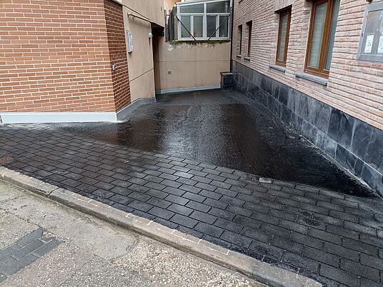 Asfalto fundido sobre baldosa en pasos subterráneos[Leer más]