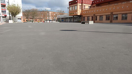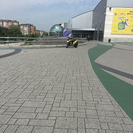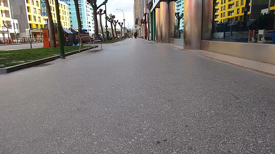 Pavimentación sobre baldosa con asfalto fundido pulido[Leer más]