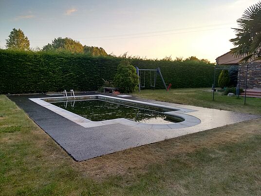 Pavimentación piscina y aceras con asfalto fundido pulido[Leer más]